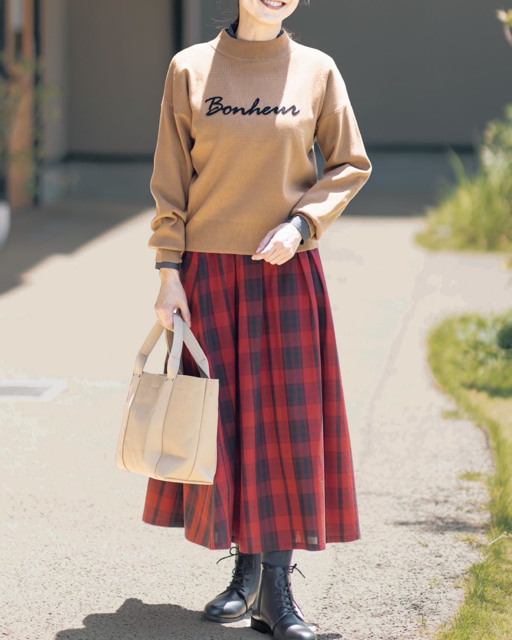 秋冬らしい雰囲気の色合わせに存在感のあるチェック柄が特徴。