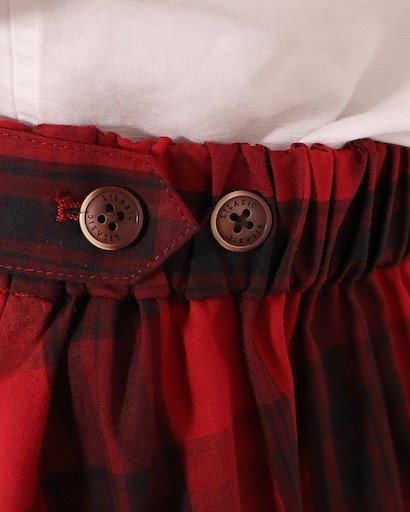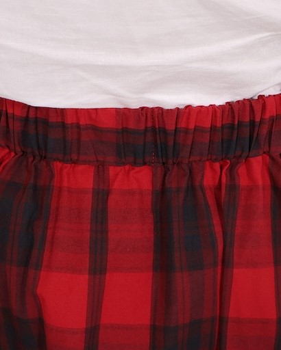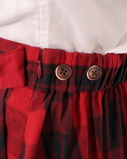 ウエストのランダムなタックでチェック柄に変化を出したデザイン。