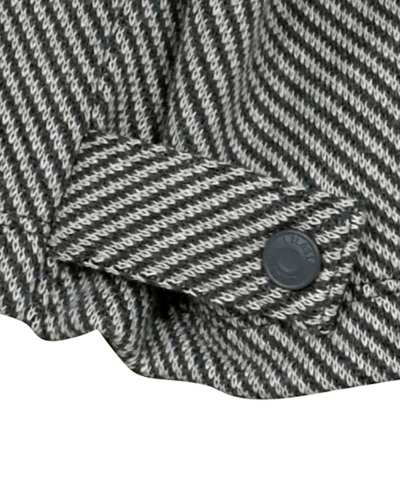 開閉しやすいドット釦、裾のアジャスター釦がポイントです。