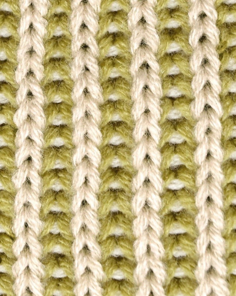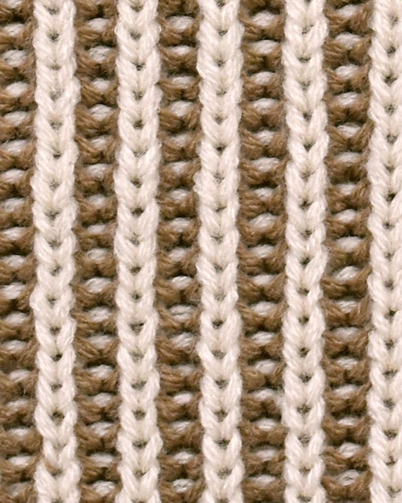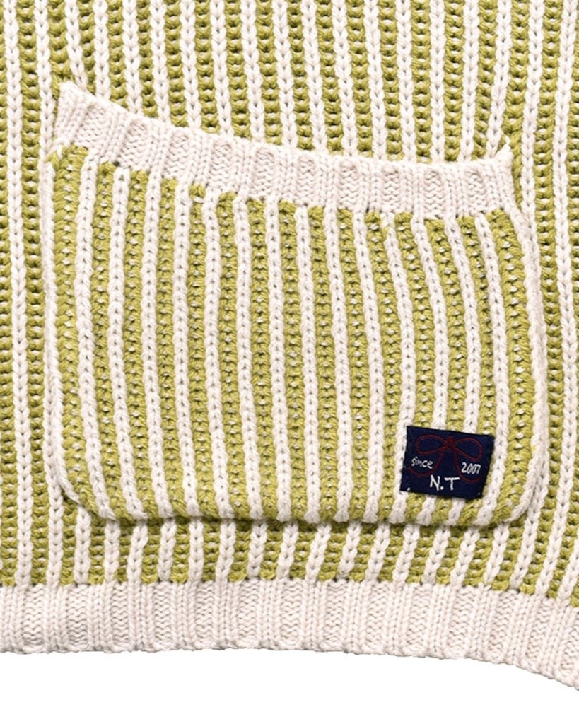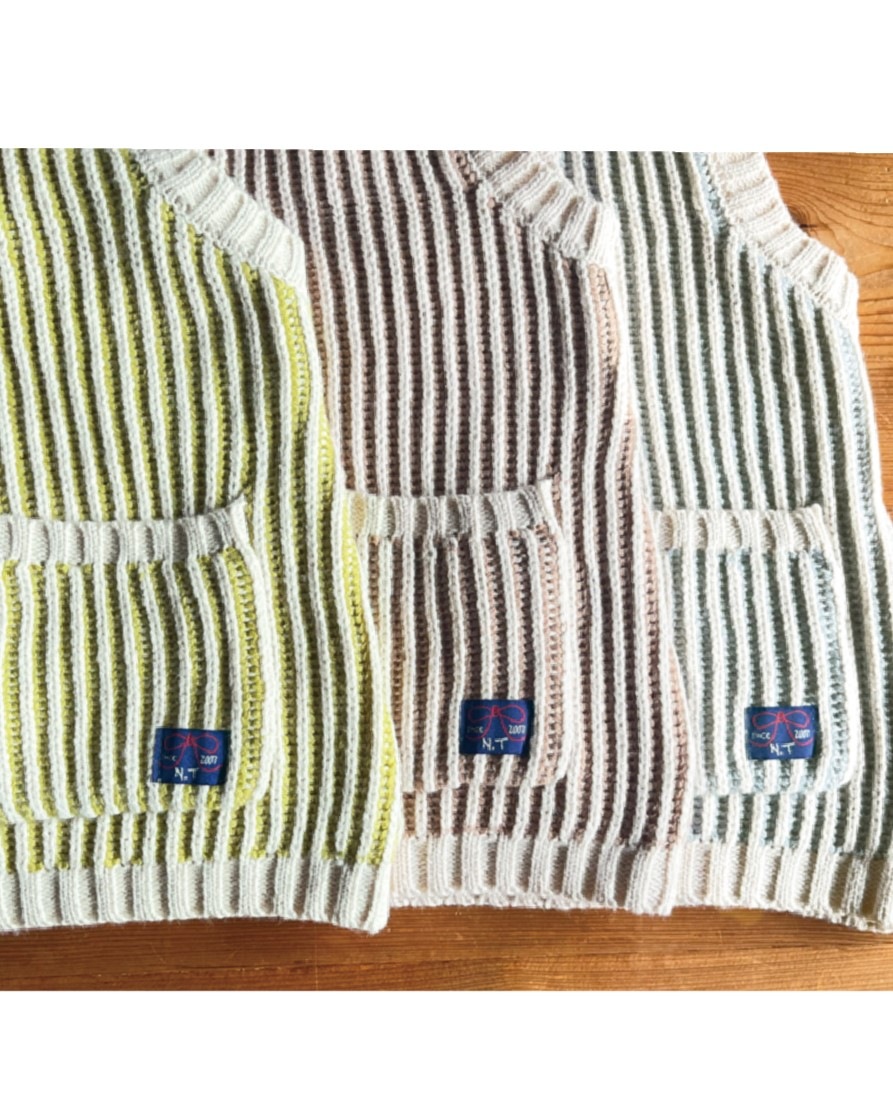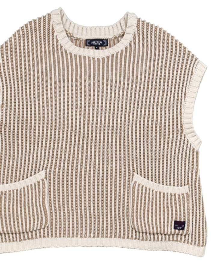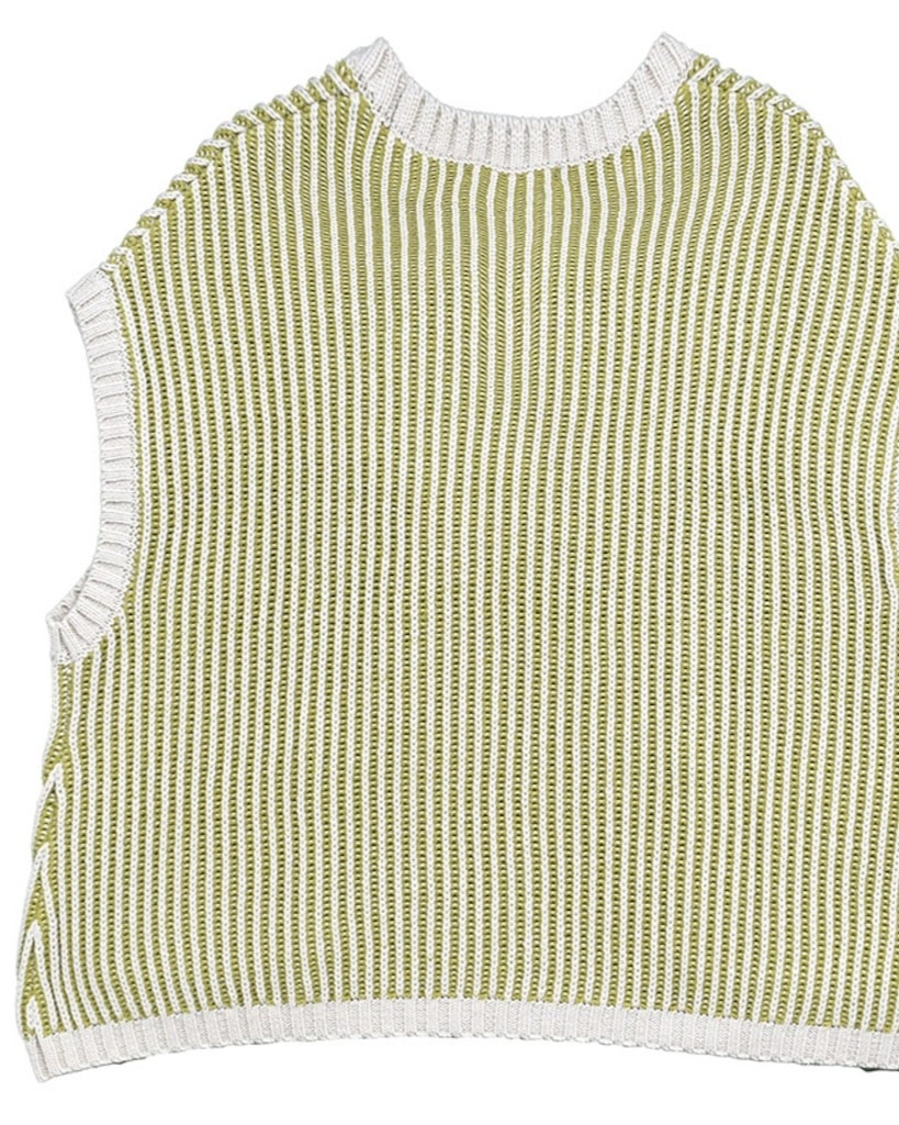 ストライプ柄のような編地のニットベスト。