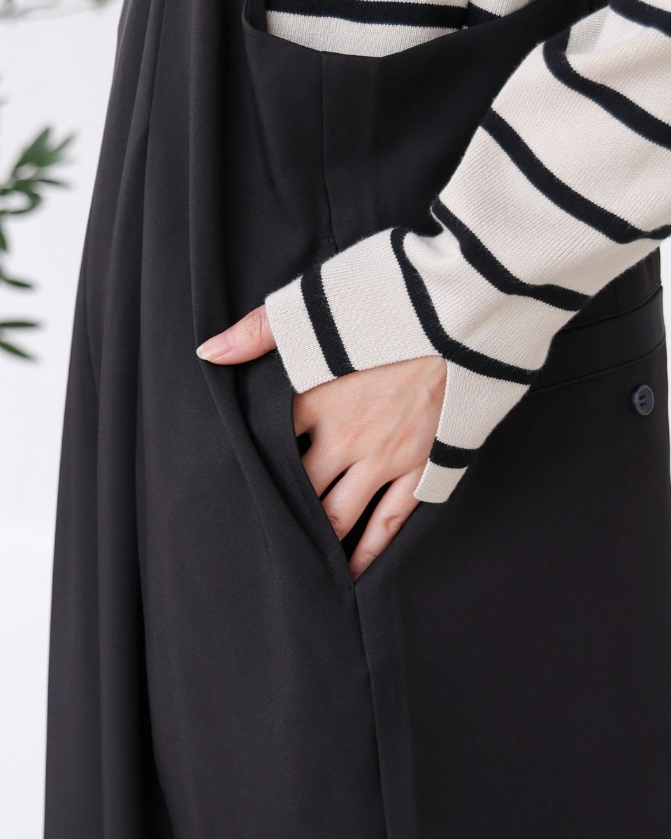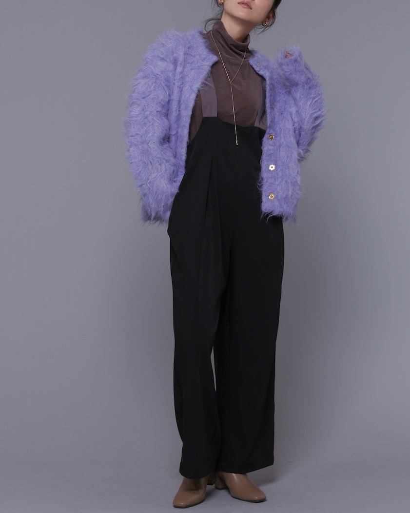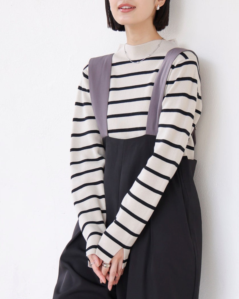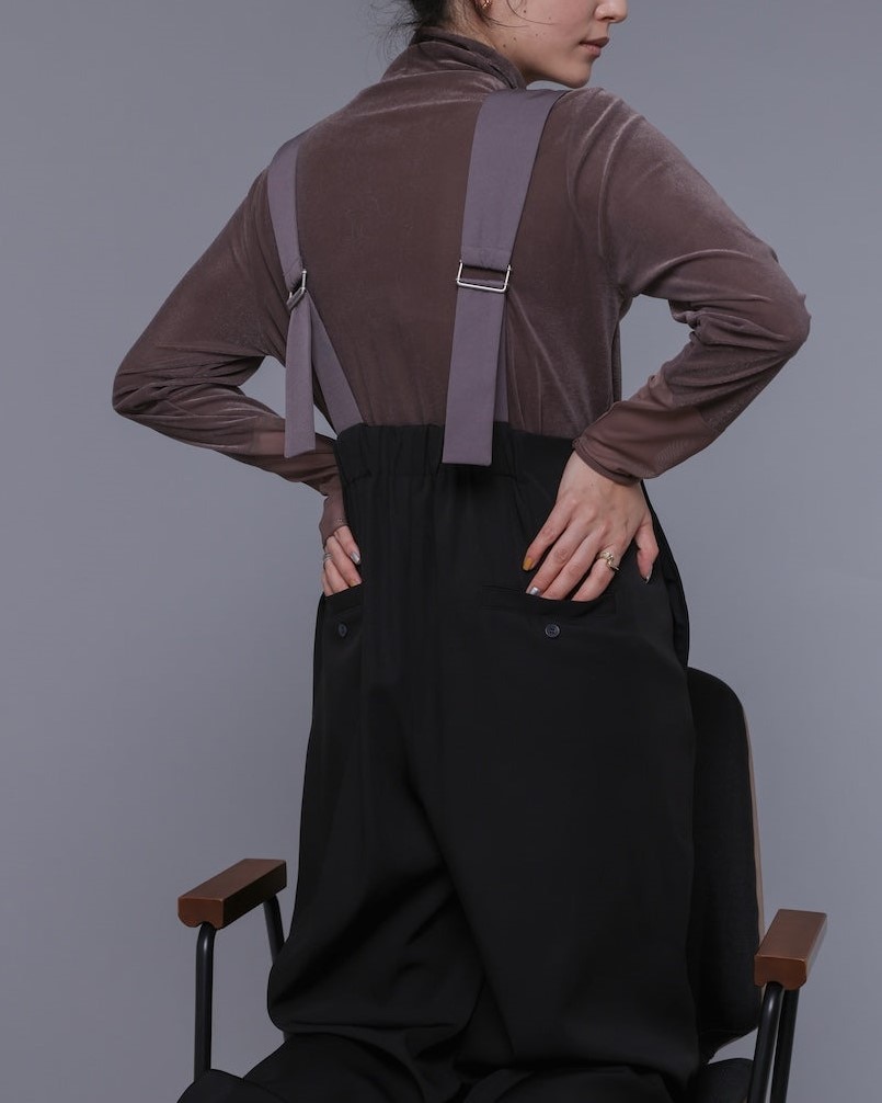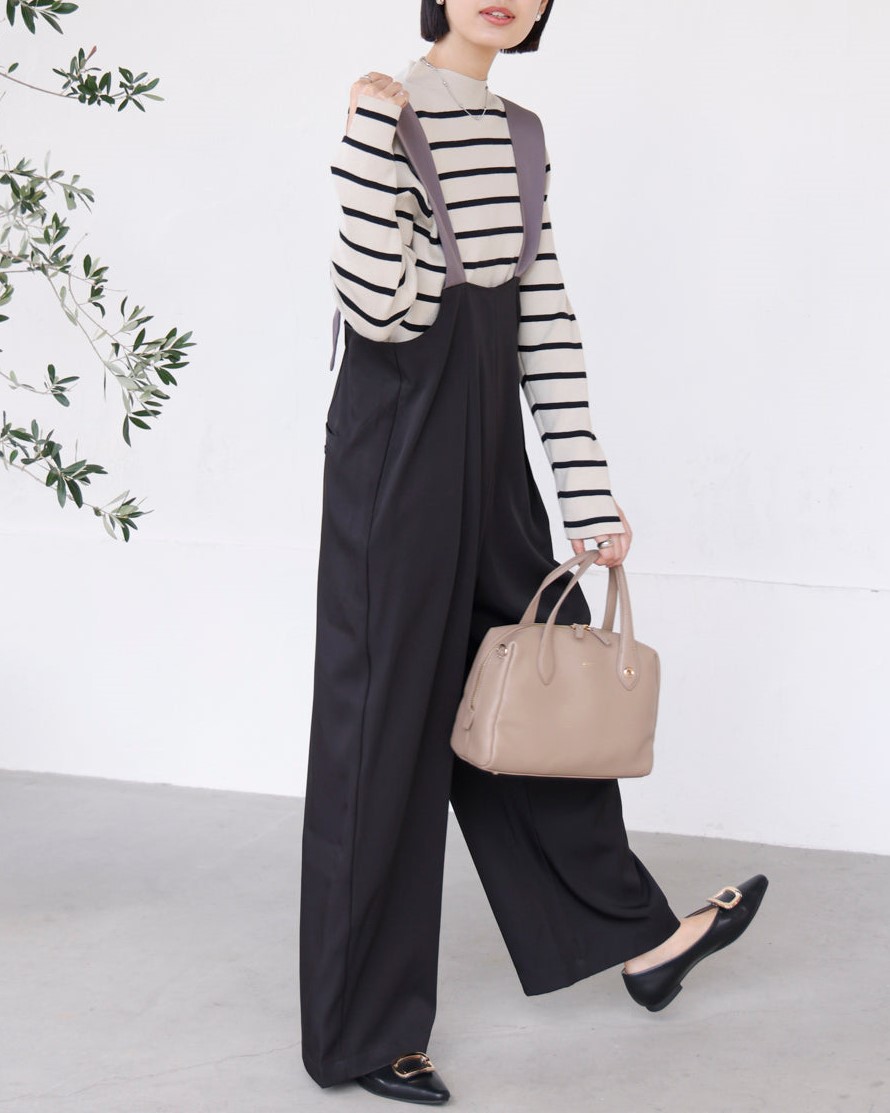 肩ひもをハイショクデザインにしたサロペット。 シンプルなデザインですが、肩ひもをハイショクで太めにすることで見た目のアクセントと肩に優しい作りにしています。 腰回りにはタック、後ろにはゴムが入っているので着心地も快適。 サロペットは肩紐の調節ができるので、身長を気にせず着れることも嬉しいポイントです。