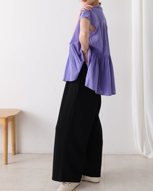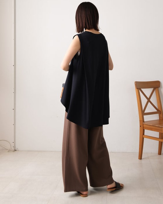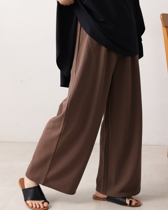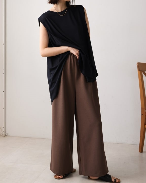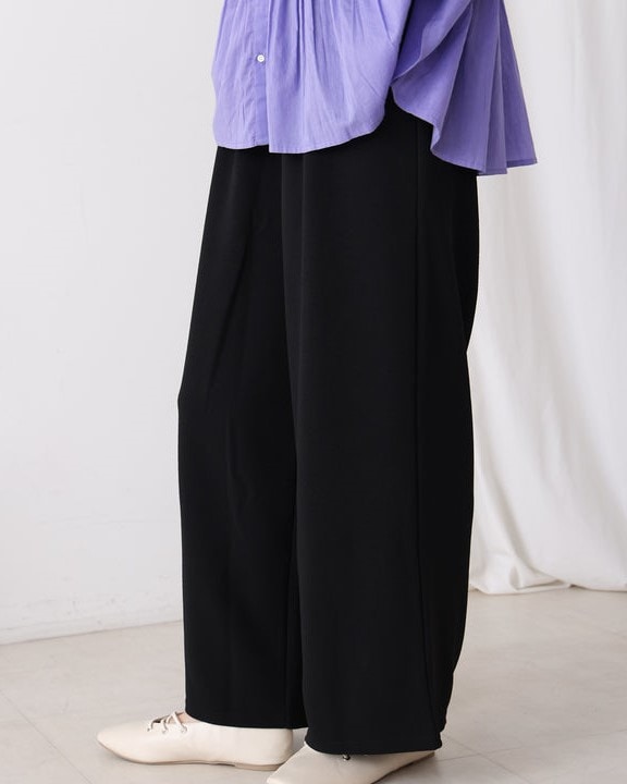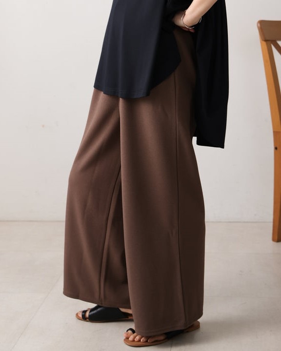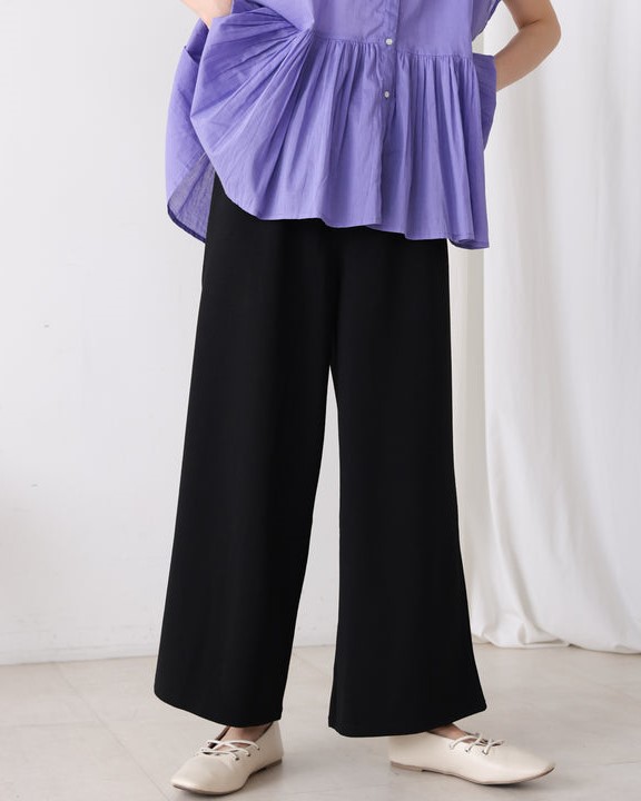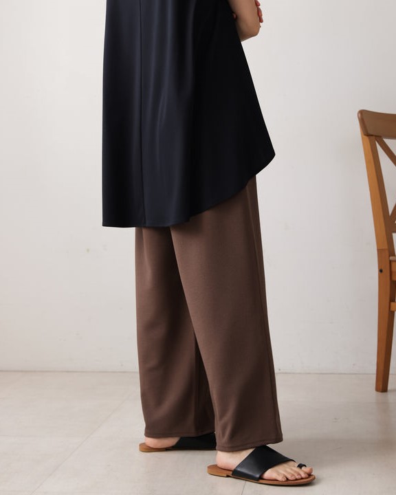 表面感のある素材は嬉しいカットソー素材で、しわにもなりにくく、ご自宅でお洗濯もOK。 ストレッチもあり、嬉しい履き心地です。