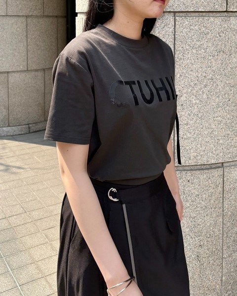 ・モード感あるロゴがアクセントになるので、あえてシンプルなボトムと合わせて引き算コーデに◎