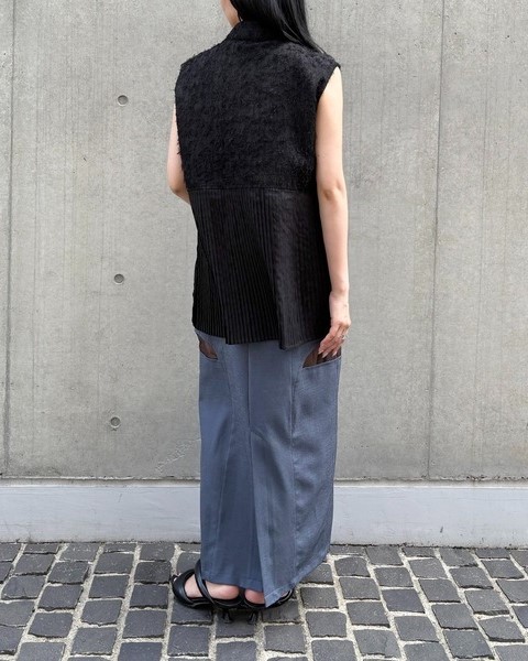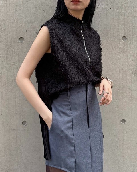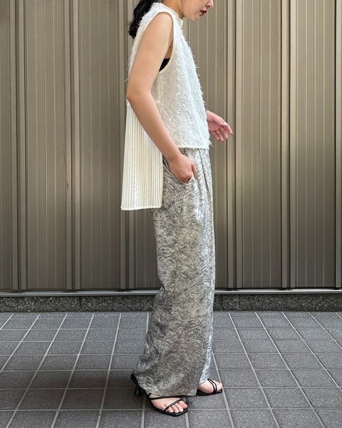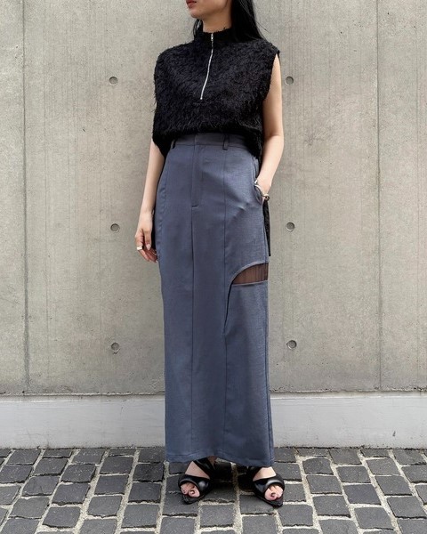デザイン性の高いアイテムなので、シンプルなワイドパンツやタイトスカートと合わせるだけでサマになります。