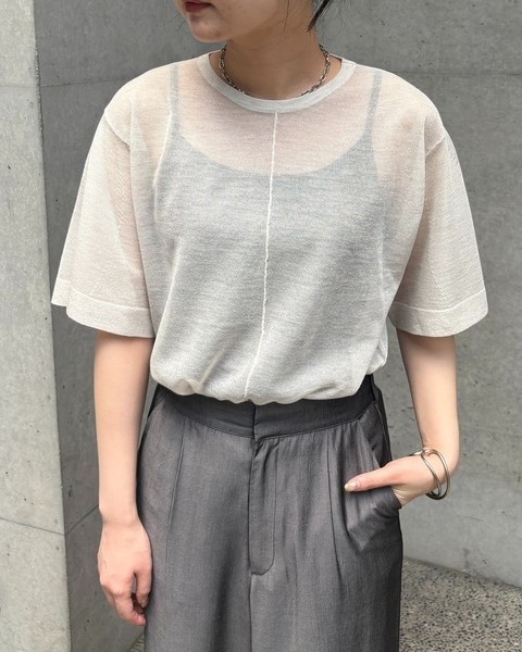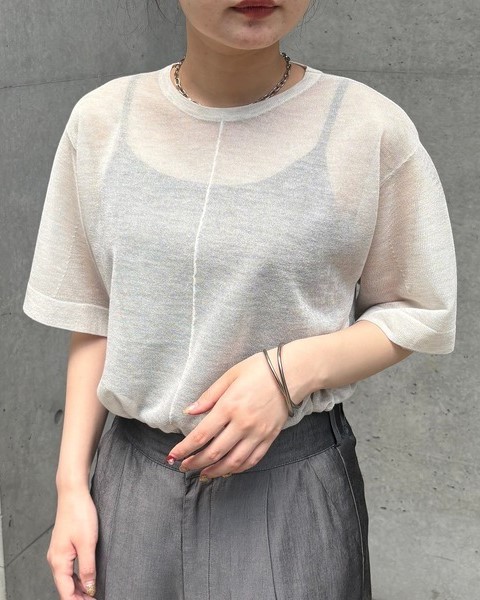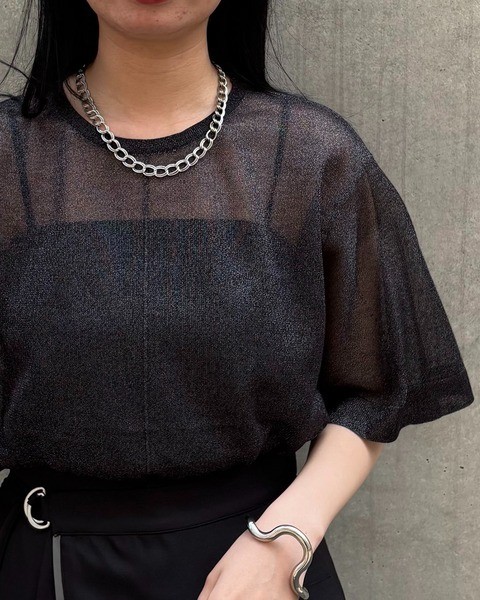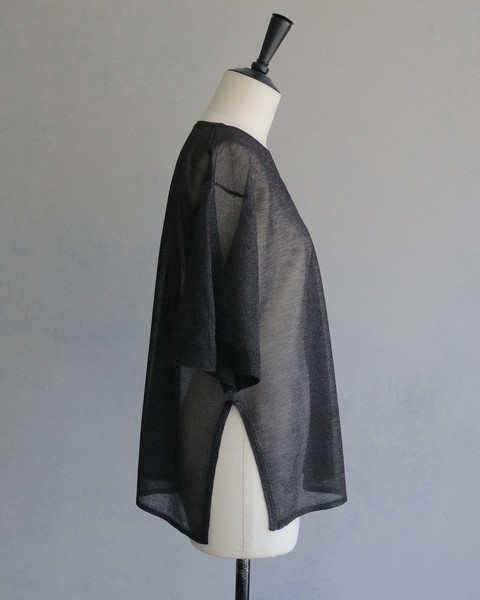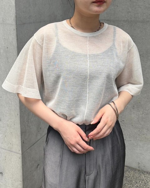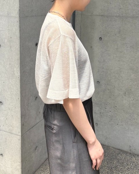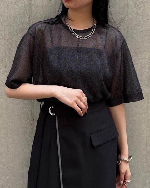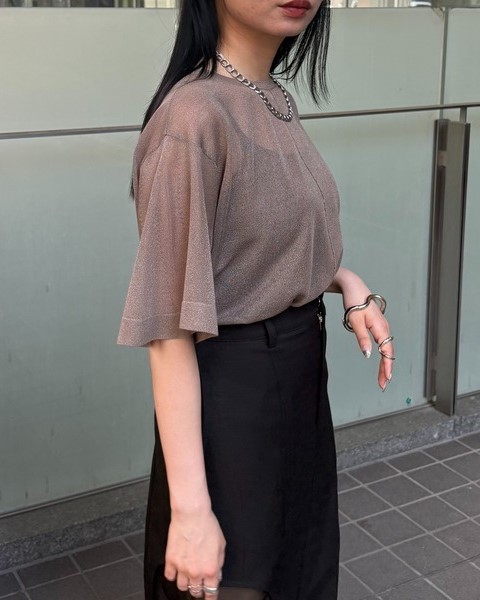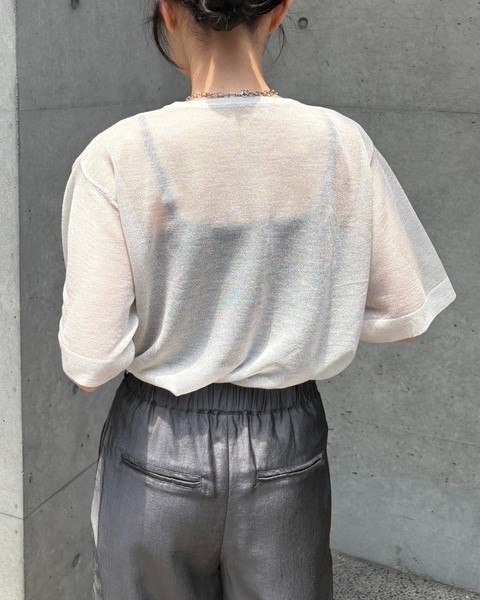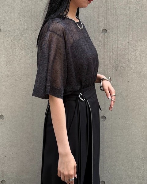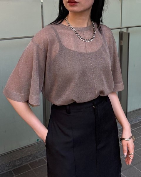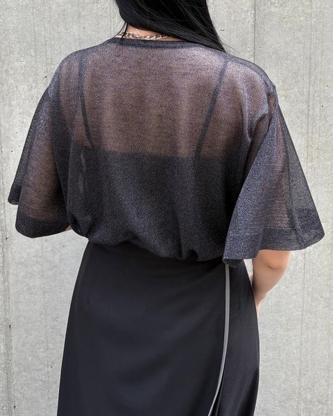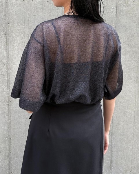 繊細なラメと程よいシアー感のある編地で、トレンド感のある一枚に仕上げました。