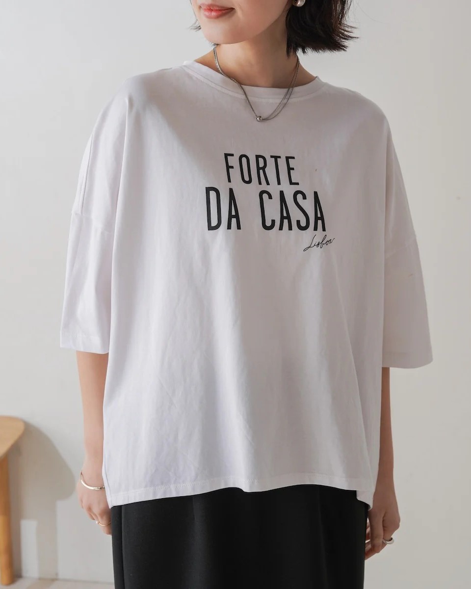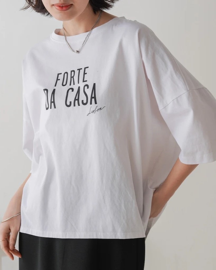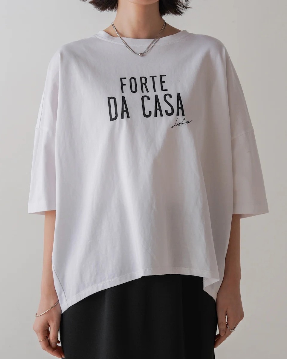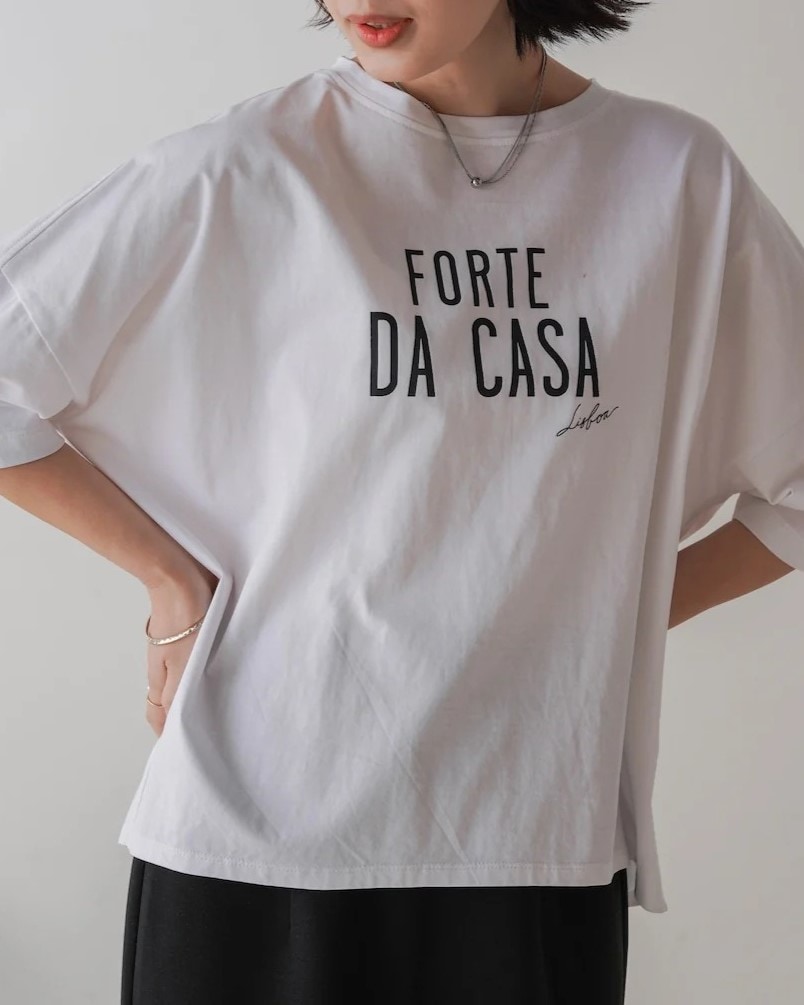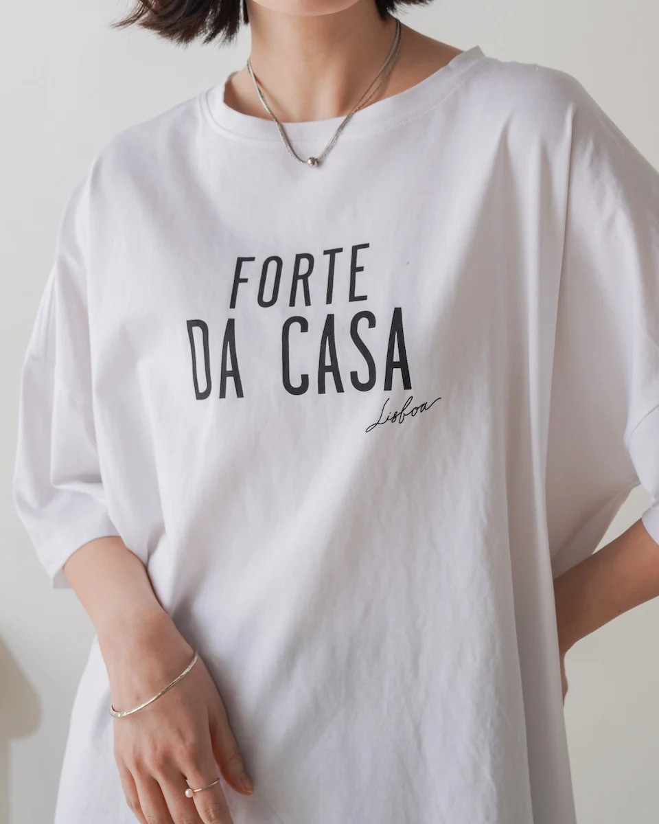 毎年人気のWシルケットシリーズからNEWロゴTシャツの登場です ロゴはポルトガルのとあるホテルのイメージをモチーフに 夏に旅行に駆け出したくなる様なワクワクする高揚感をイメージして製作しました 後ろのラメ混ラインテープもアクセントになりバックスタイルに抜かりがないのもポイント