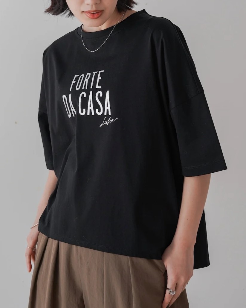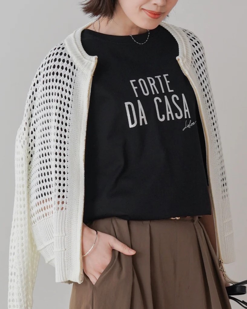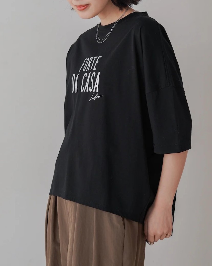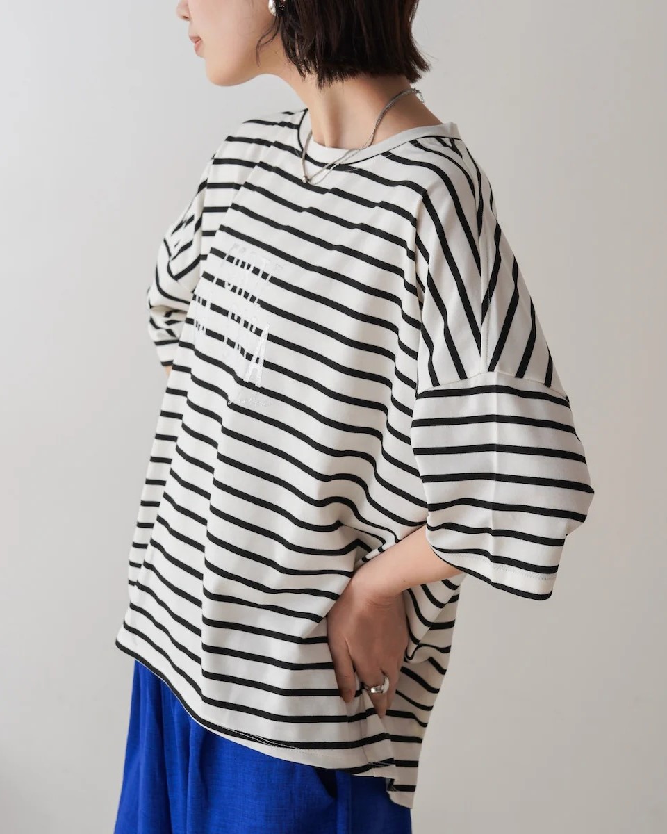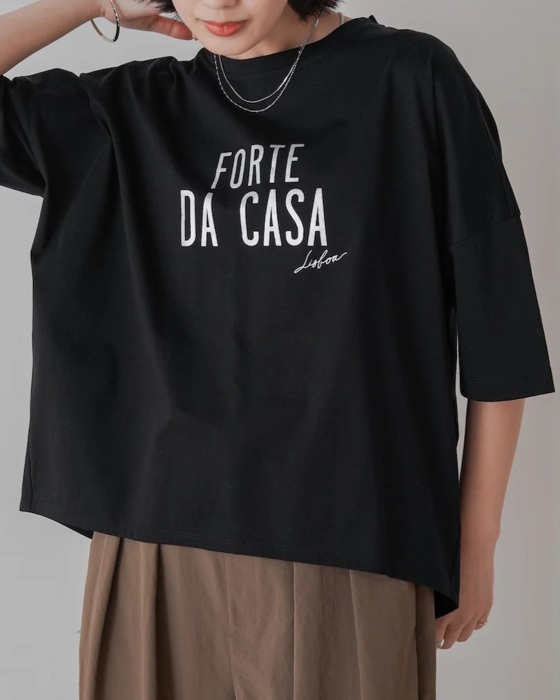 毎年人気のWシルケットシリーズからNEWロゴTシャツの登場です ロゴはポルトガルのとあるホテルのイメージをモチーフに 夏に旅行に駆け出したくなる様なワクワクする高揚感をイメージして製作しました 後ろのラメ混ラインテープもアクセントになりバックスタイルに抜かりがないのもポイント