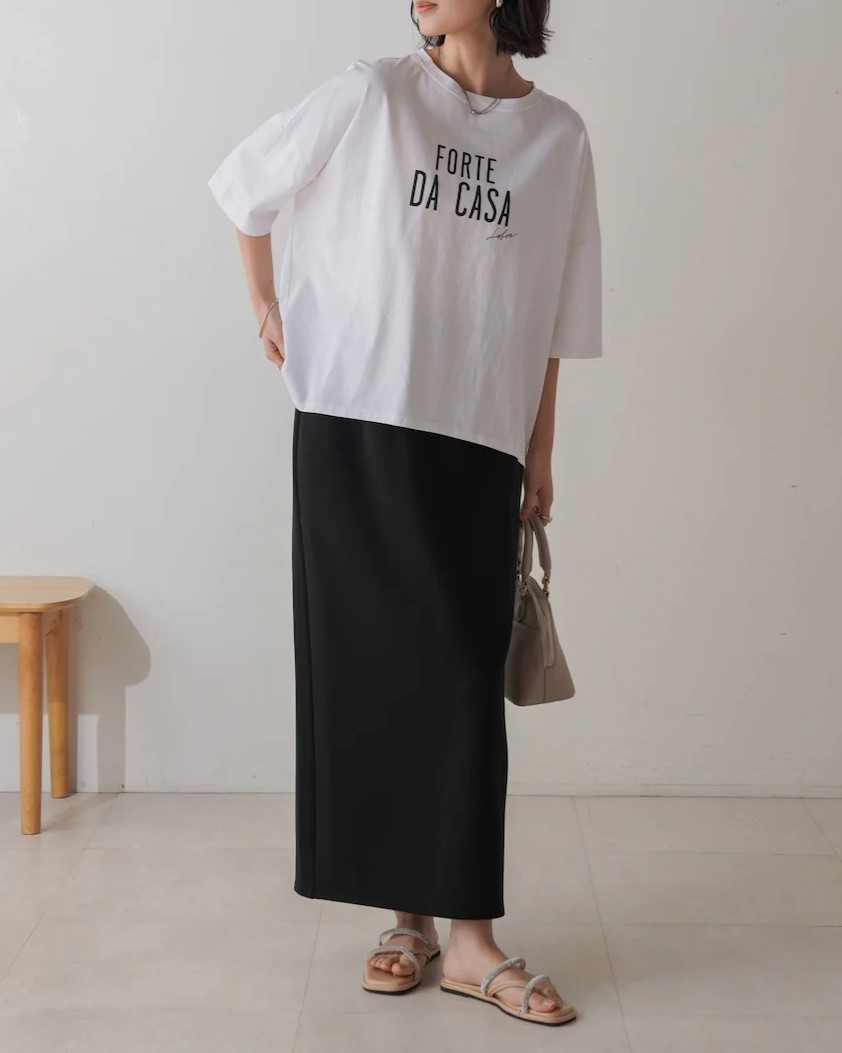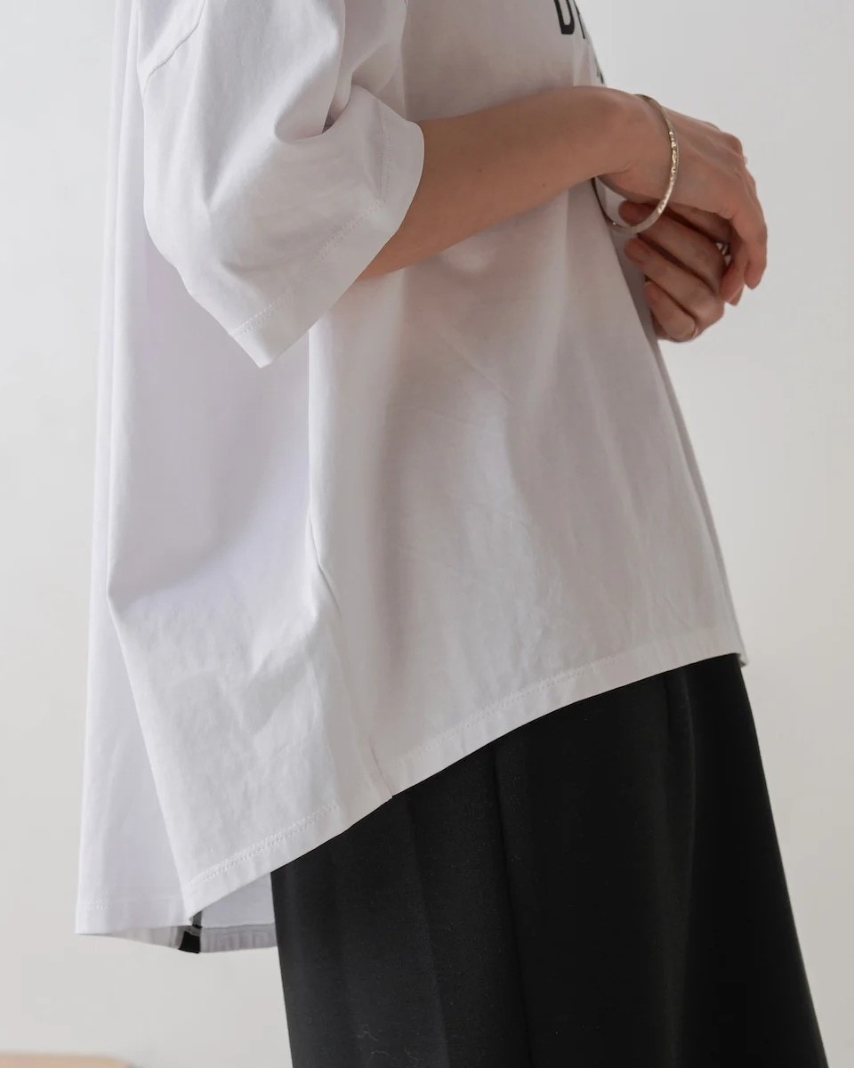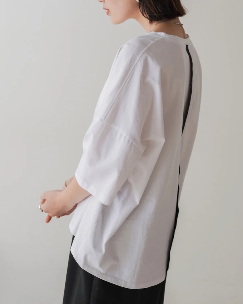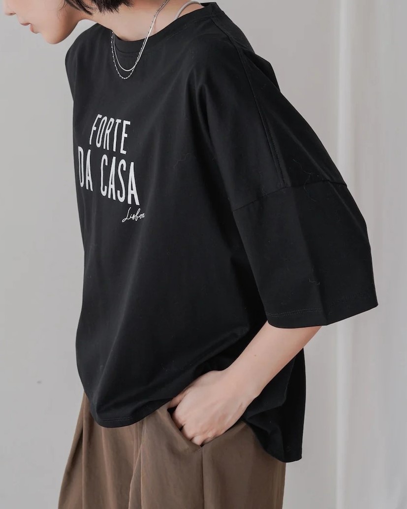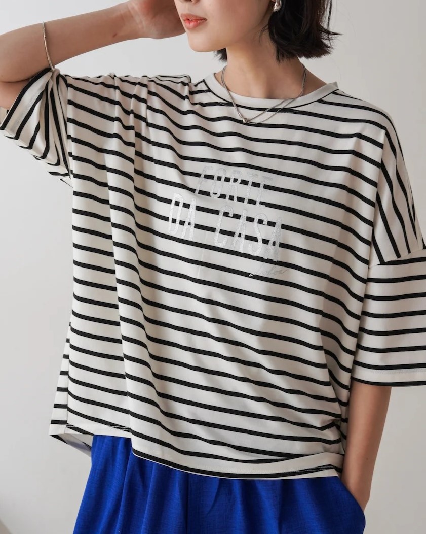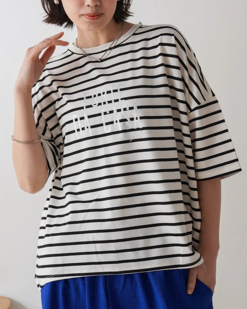 毎年人気のWシルケットシリーズからNEWロゴTシャツの登場です ロゴはポルトガルのとあるホテルのイメージをモチーフに 夏に旅行に駆け出したくなる様なワクワクする高揚感をイメージして製作しました 後ろのラメ混ラインテープもアクセントになりバックスタイルに抜かりがないのもポイント