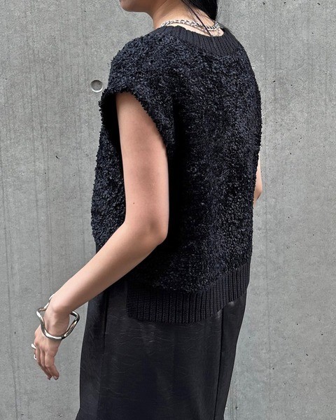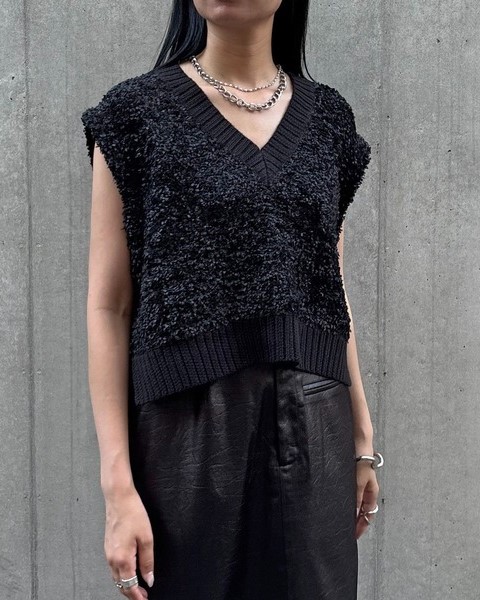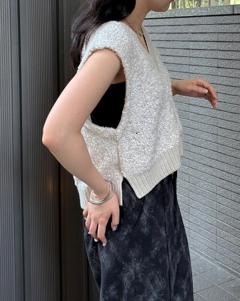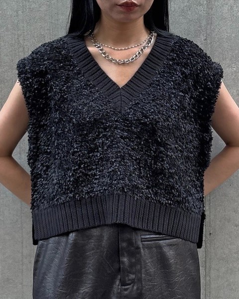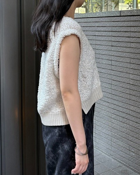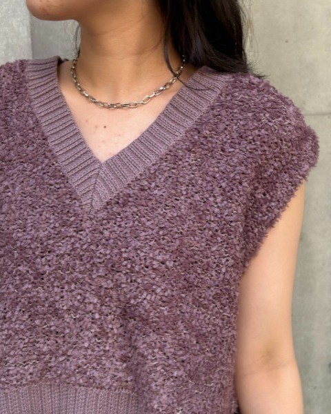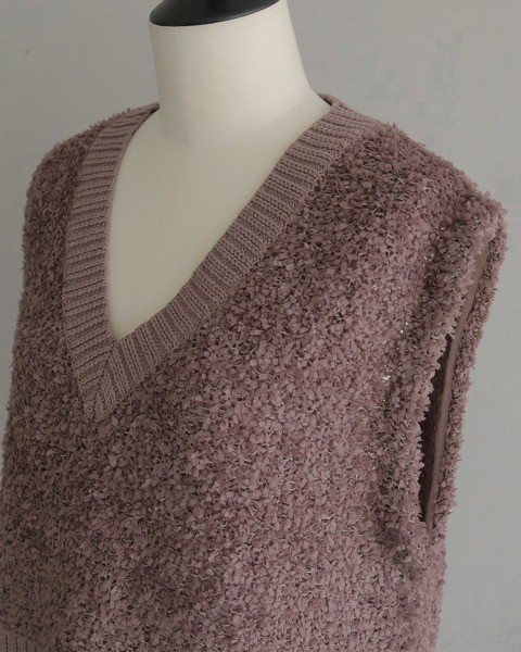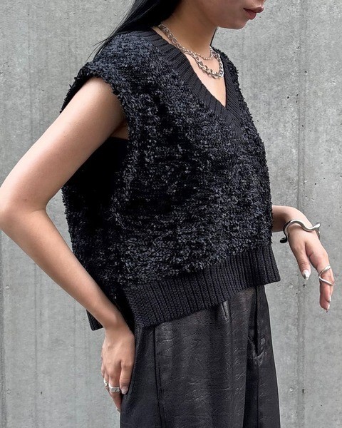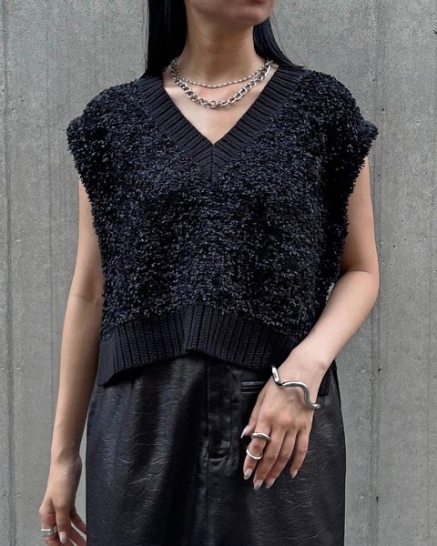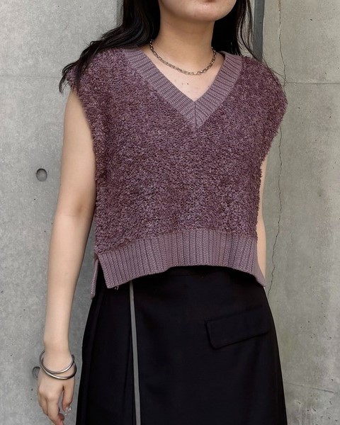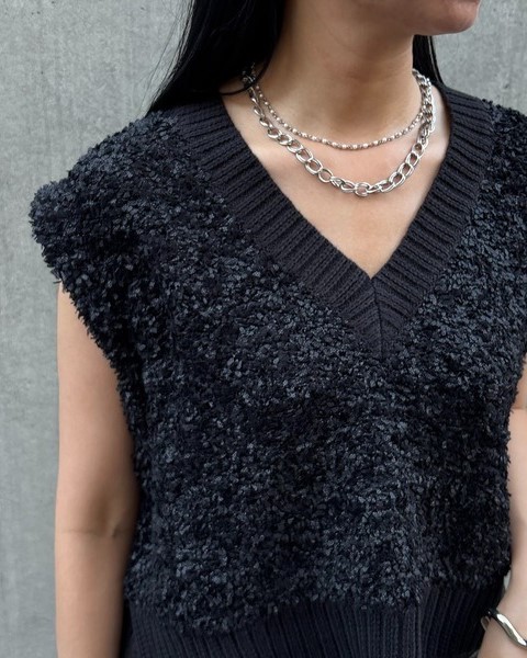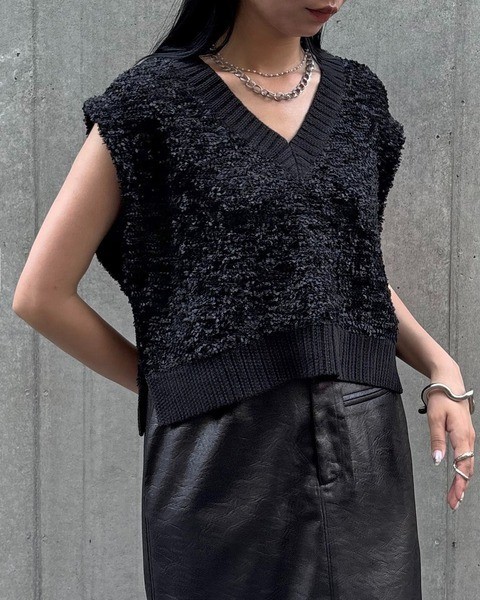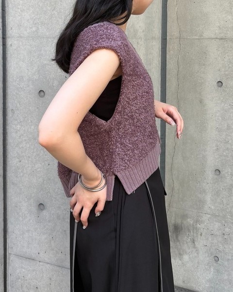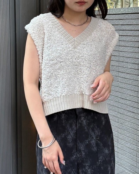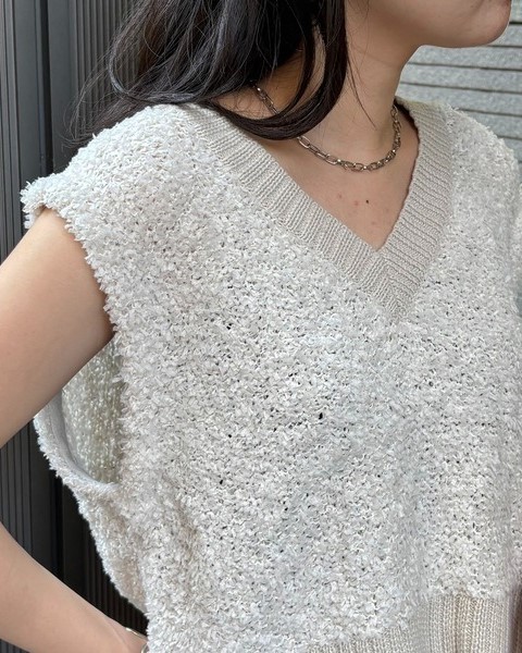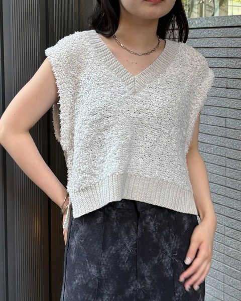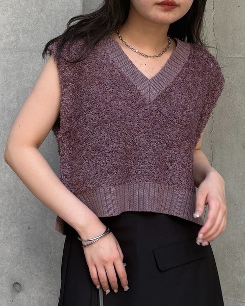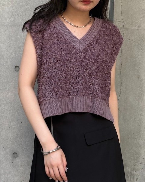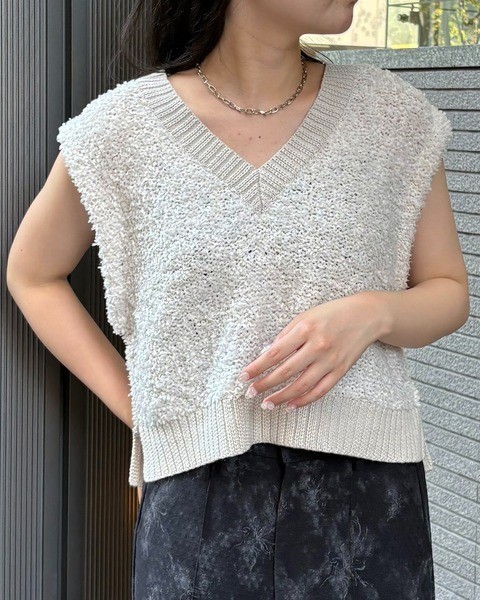 秋冬らしいボリューム感が可愛い、テープヤーン素材を使用したニットベスト。