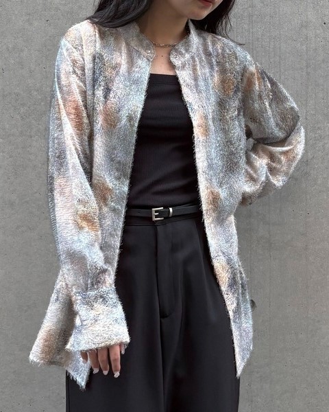 アートプリント×フェザー生地が目を惹く、モードなオーバーシャツ
