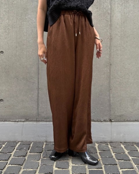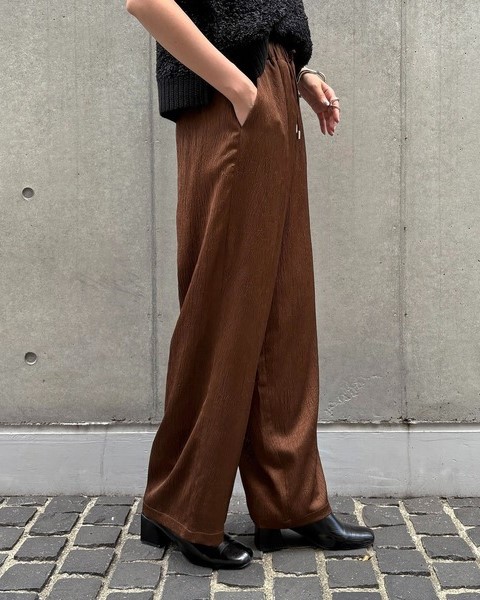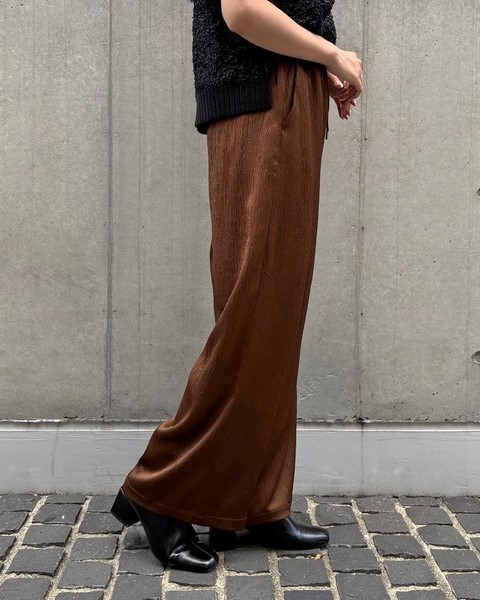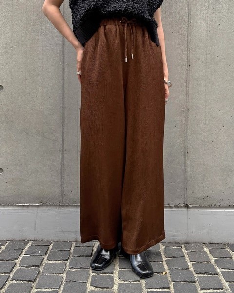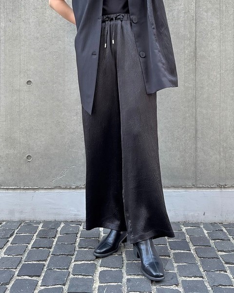 着るだけで雰囲気が決まる、マットサテンのワイドパンツ