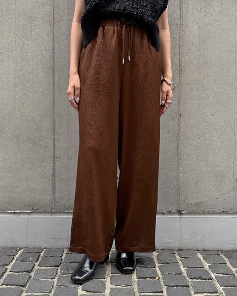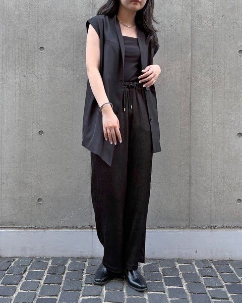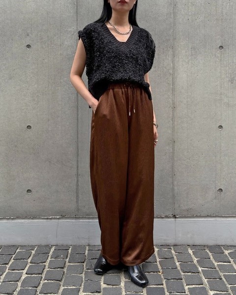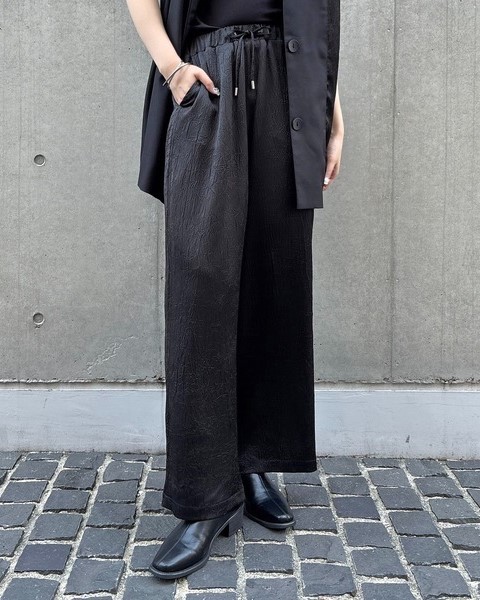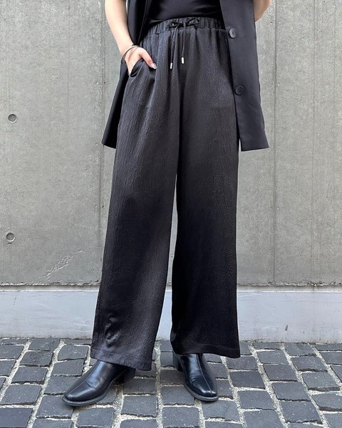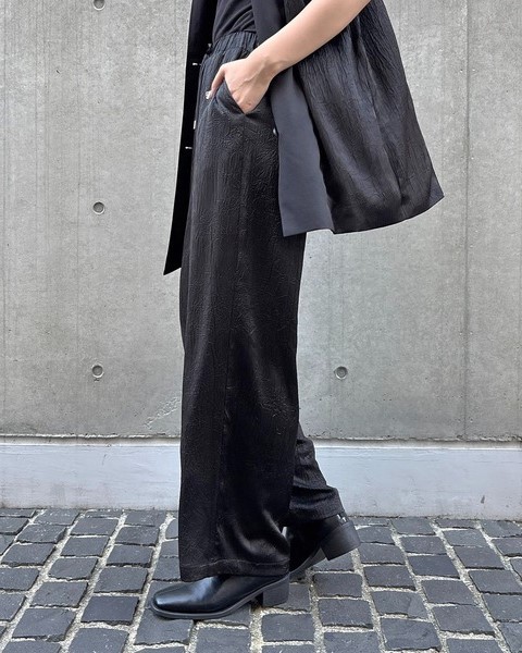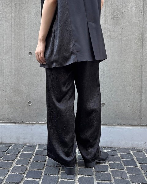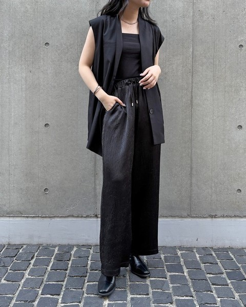 ・同素材使用のマットサテンワイドパンツ(品番:293-67701)とのセットアップスタイルもおすすめ