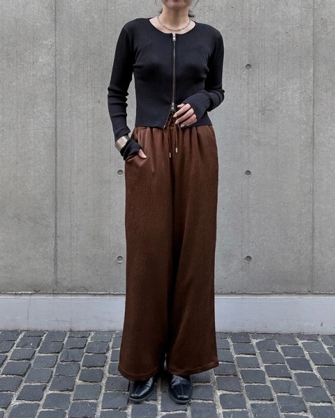 ワイドパンツやタイトスカートはもちろん、ワンピースの上からも相性抜群。