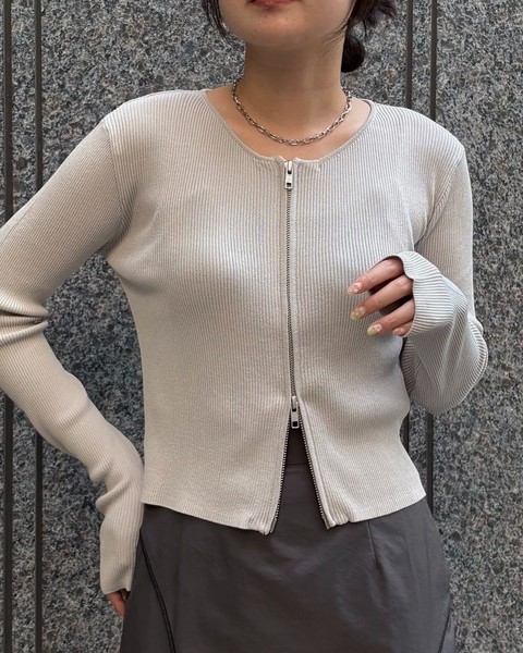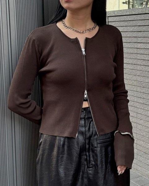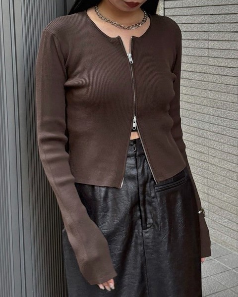 Wジップを下から少し開けて、抜け感をプラスするスタイリングもおすすめです。