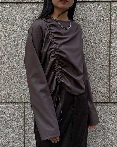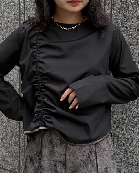 ギャザーはコードで調整可能で、スタイリングに合わせてシルエットの変化を楽しめます。