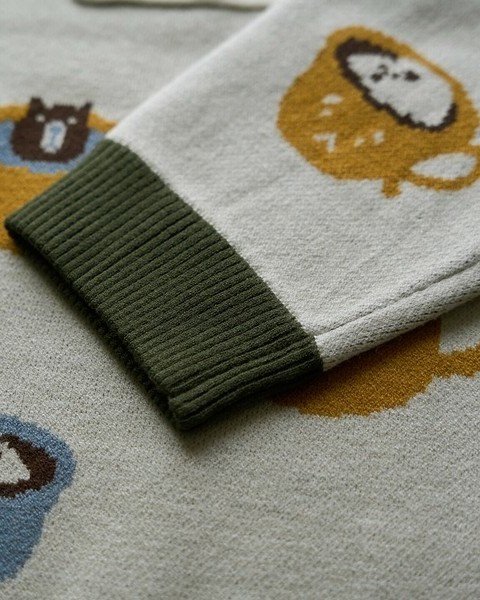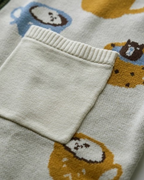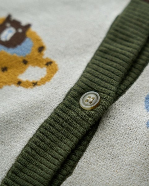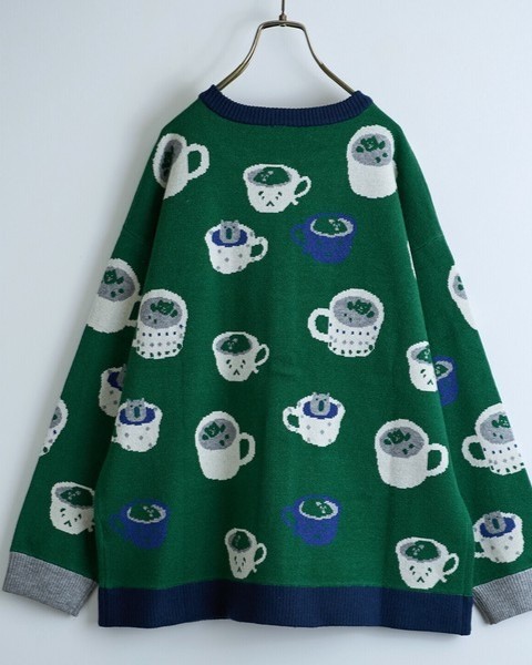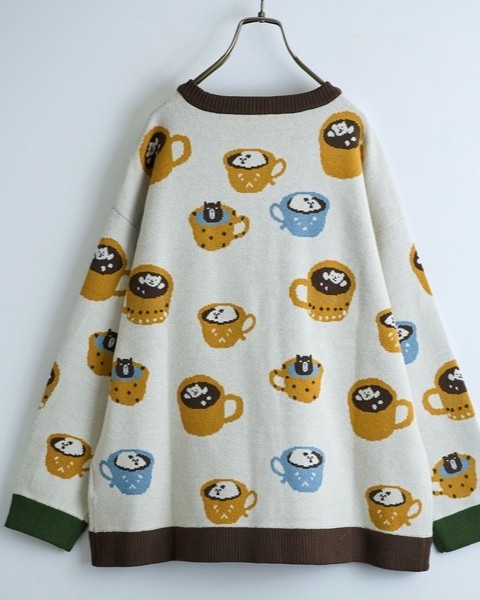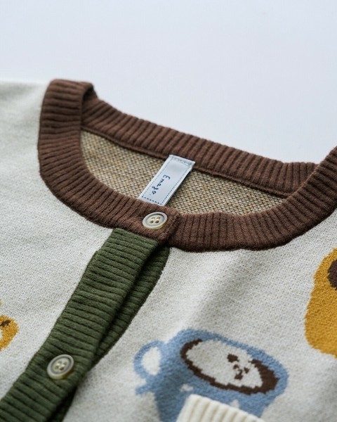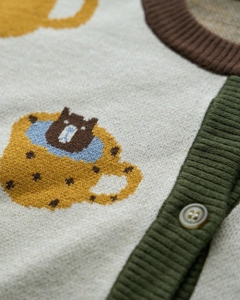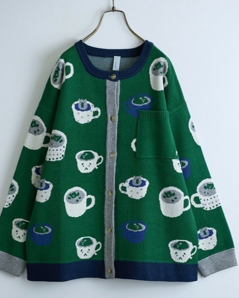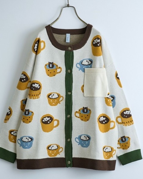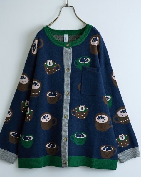 ゆる〜いラテアートデザインのニットカーディガンです。