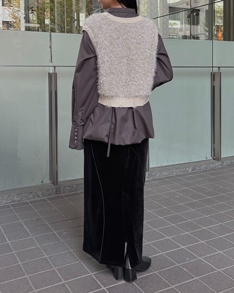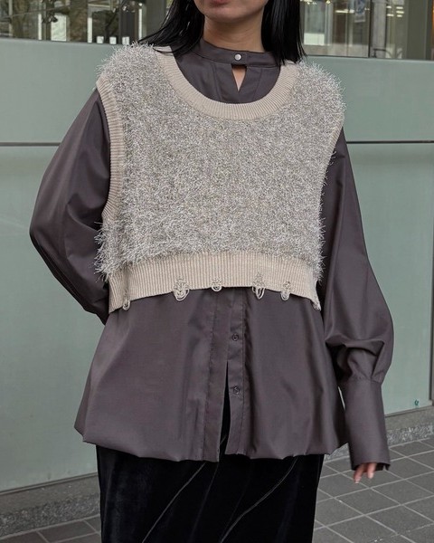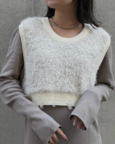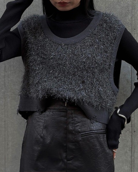 たっぷりとあしらわれたラメフリンジが印象的なニットベスト。