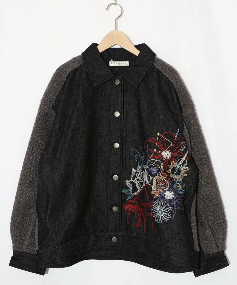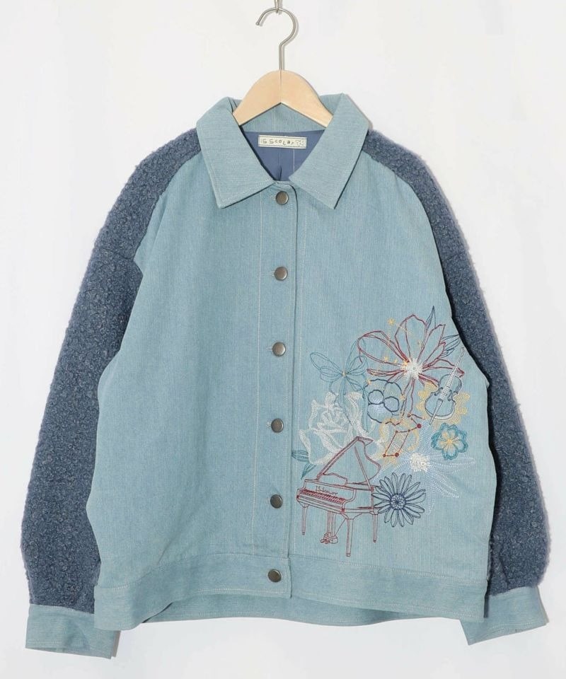 イズスカラー / 花蝶刺繍デニム×プードルボア 切替ジャケット