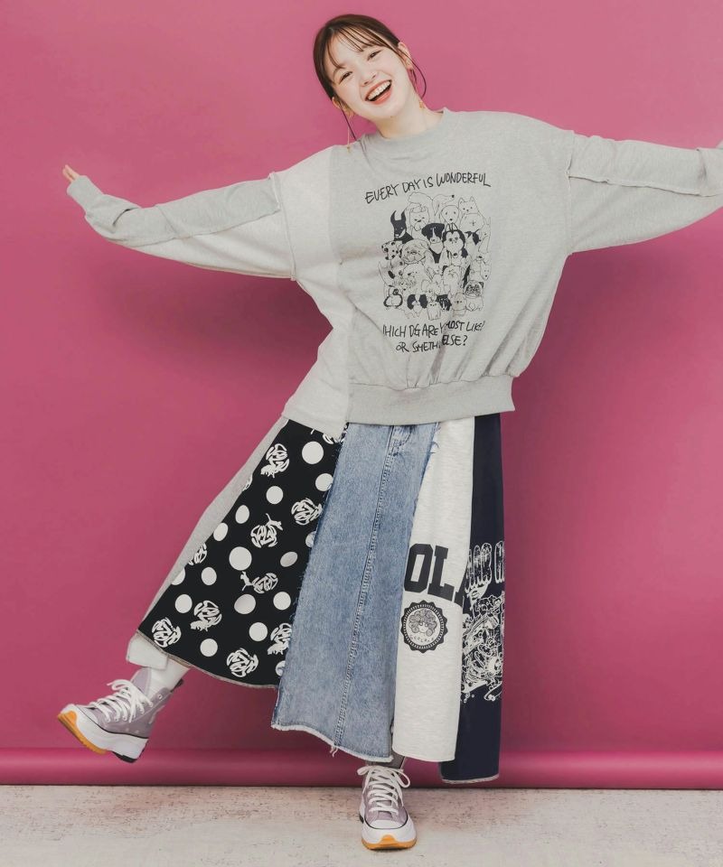 そしてPOPなプリント生地を組み合わせた異素材MIXなデニムスカートが登場!!
