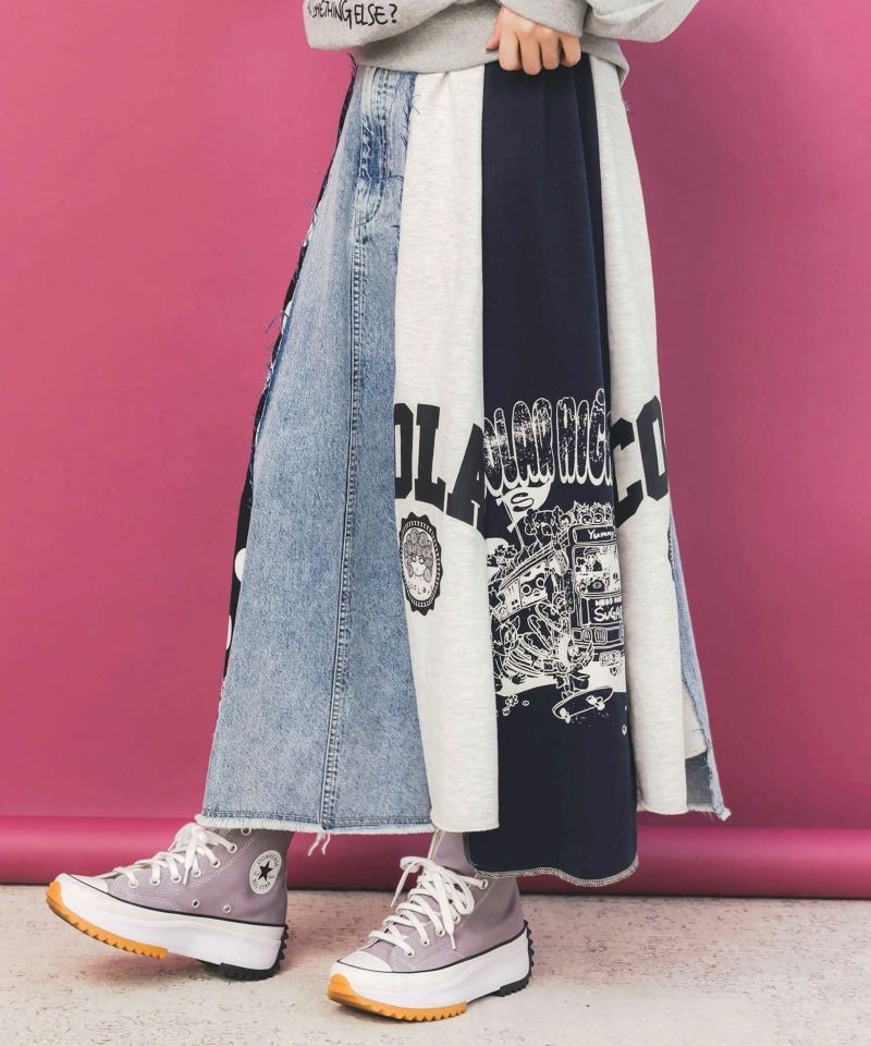 スカラー / スカラーリメイク風 異素材切替デニムスカート