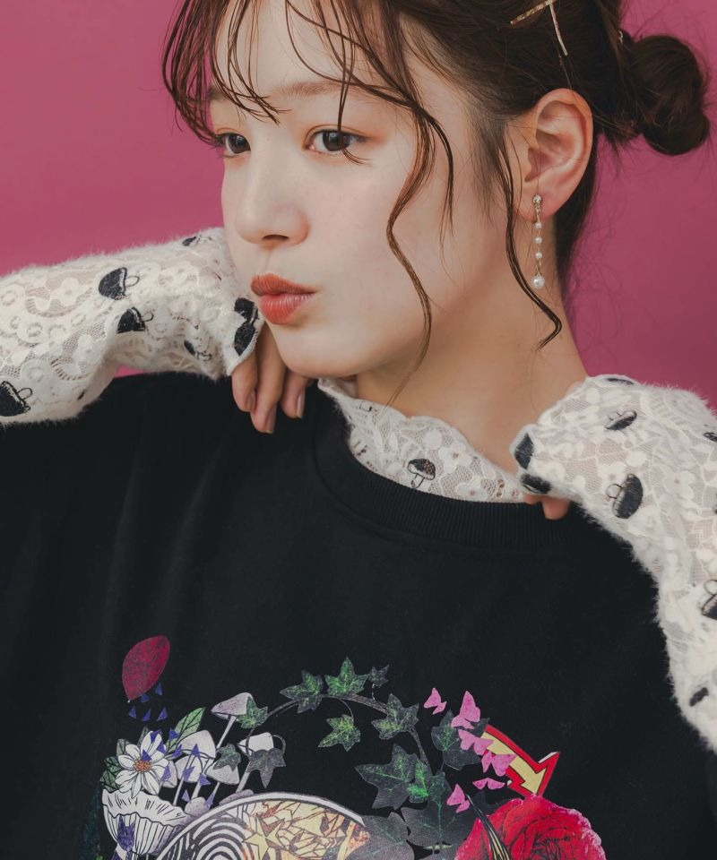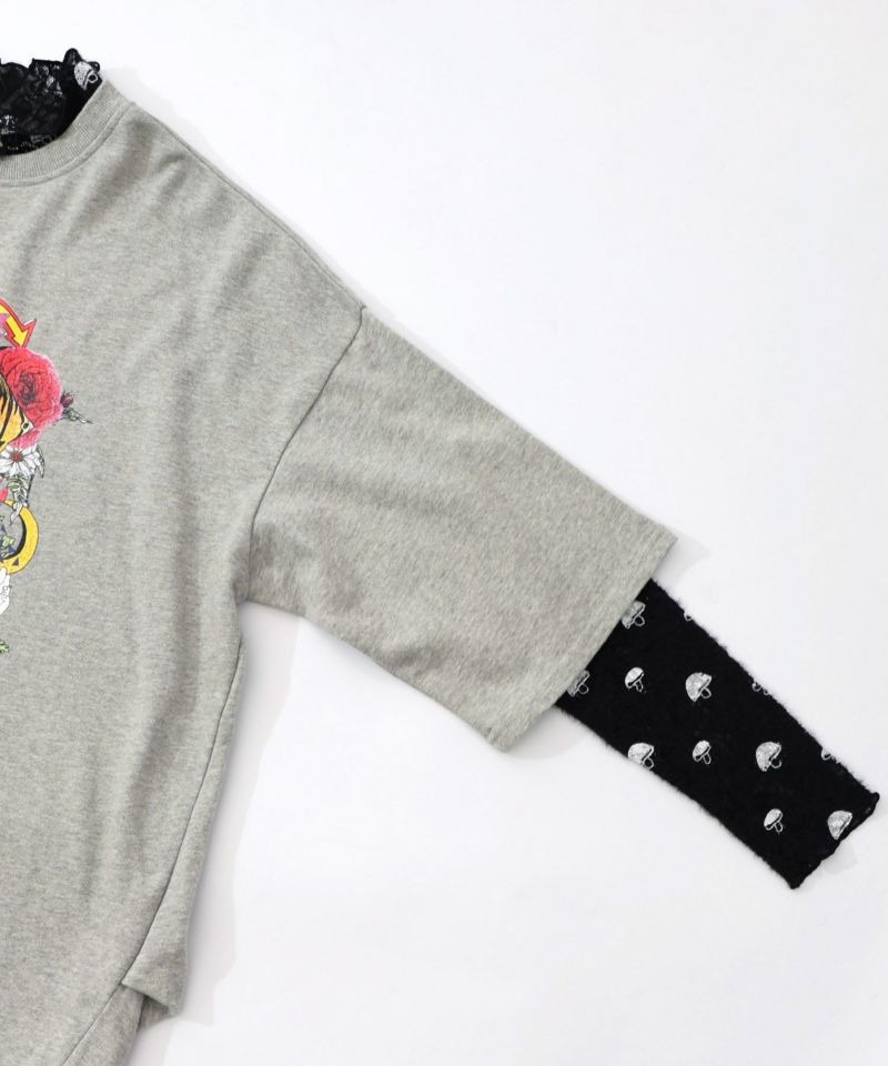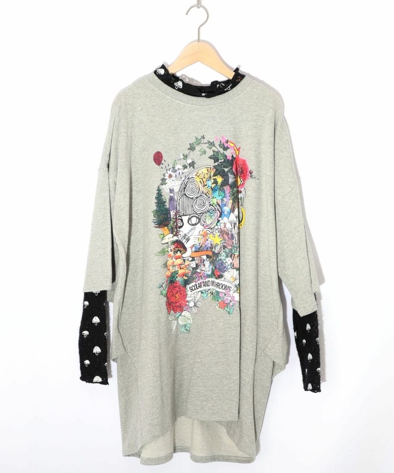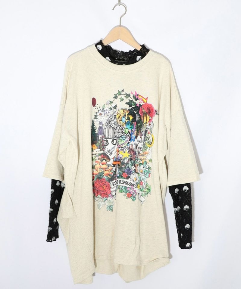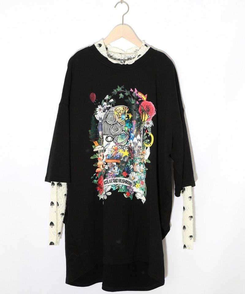 スカラー / ミニ裏毛×起毛レースきのこ柄レイヤード風チュニック