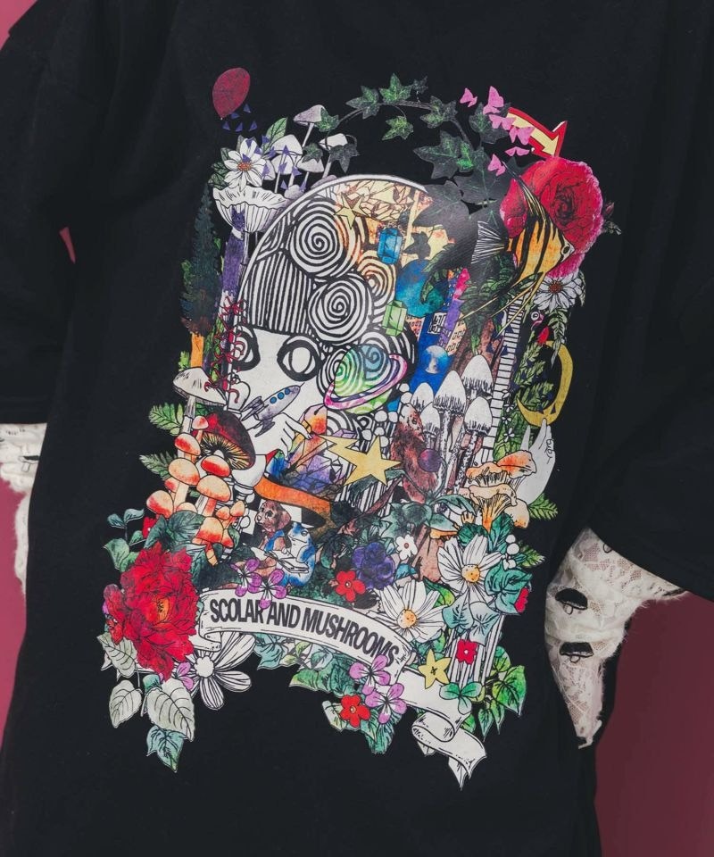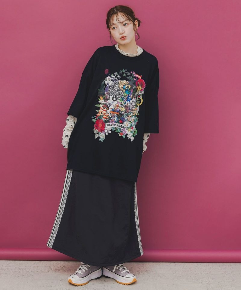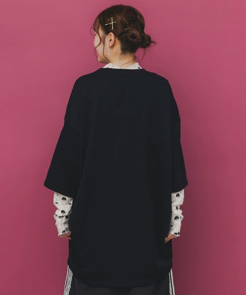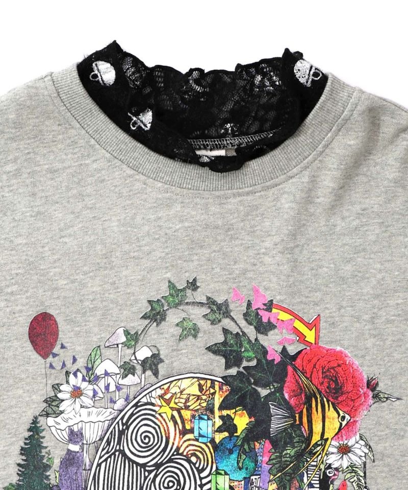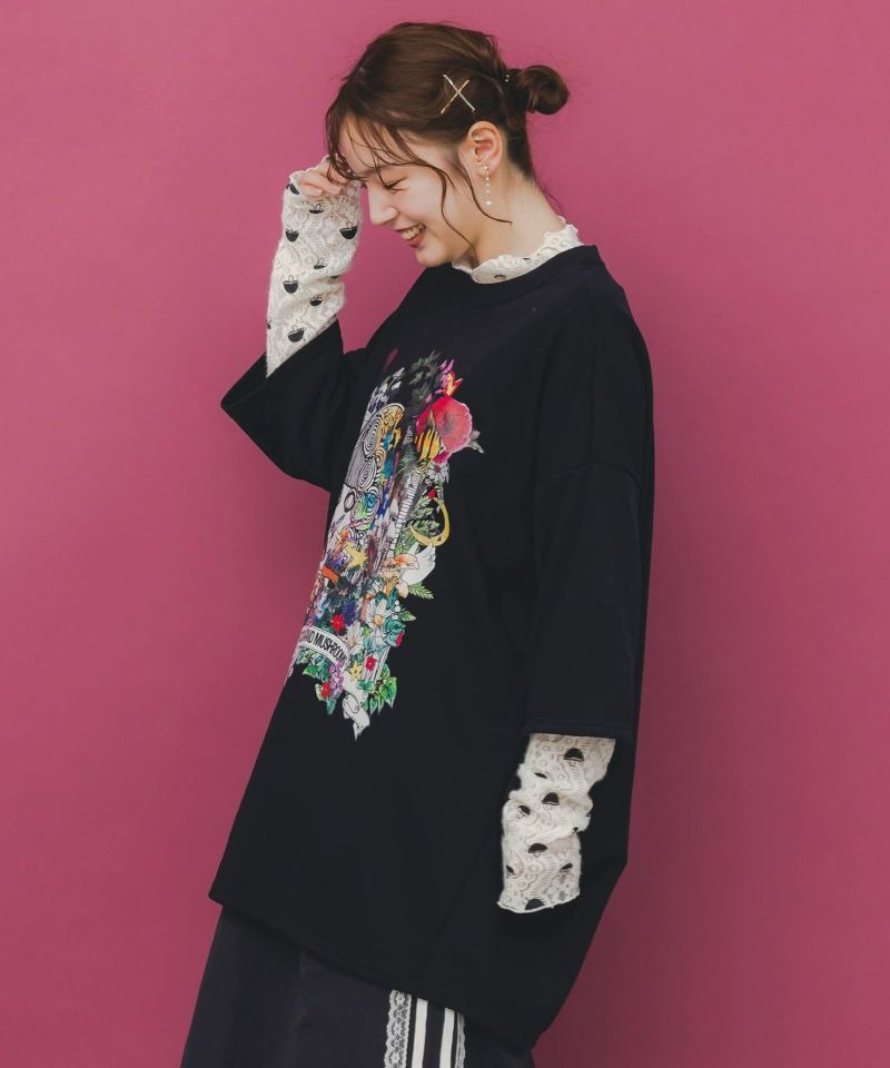 スカラー / ミニ裏毛×起毛レースきのこ柄レイヤード風チュニック