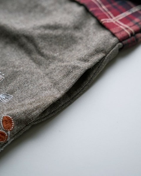 ・切替えのスカート部分は起毛ヘリンボーン生地を使用しています。