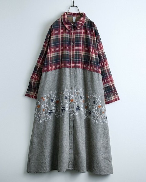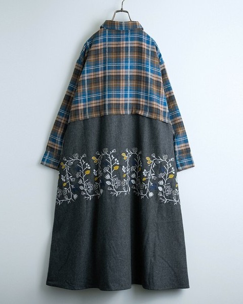 【花のツル刺繍ドッキングワンピース】
