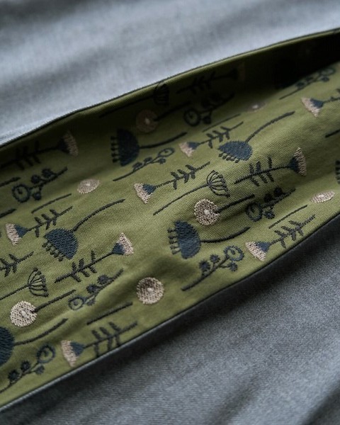 モクグレーの時:花の刺繍入りカーキ生地と無地のネイビー生地と無地のブラウン生地