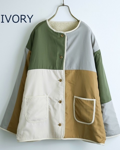 タフタの配色切替えとボアのリバーシブルブルゾンが出来ました。