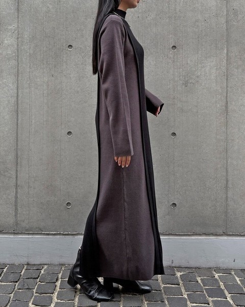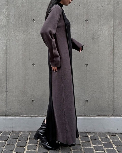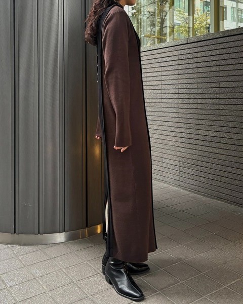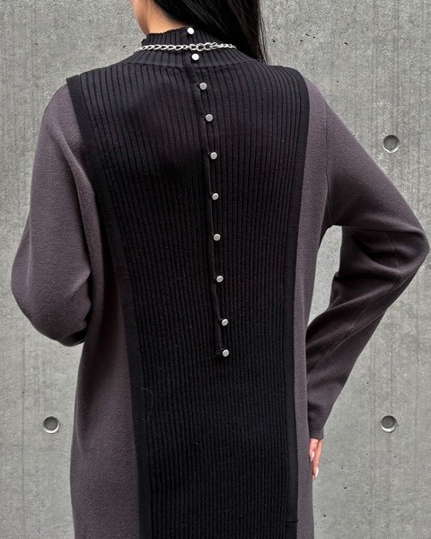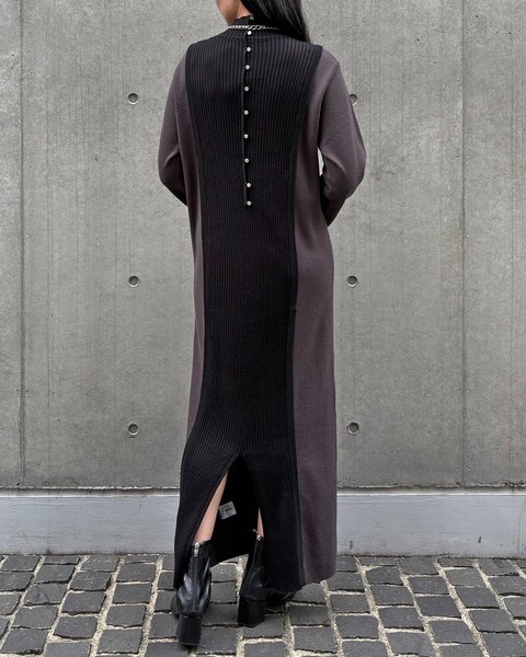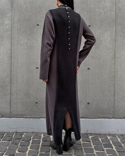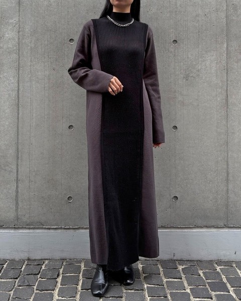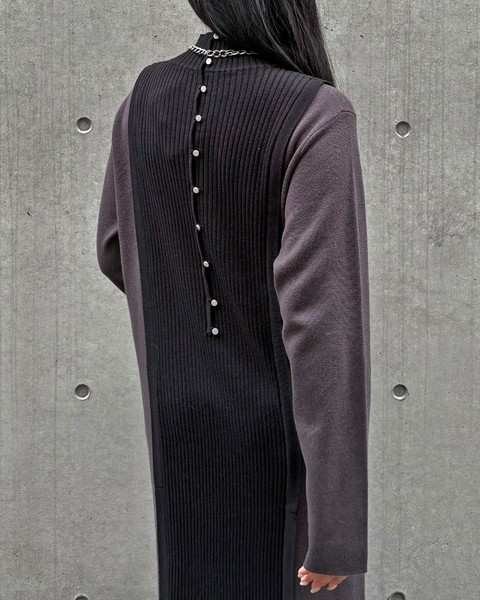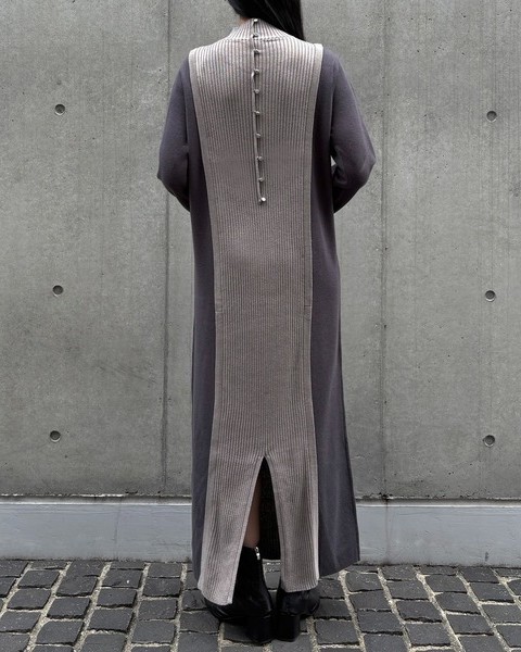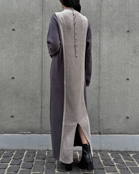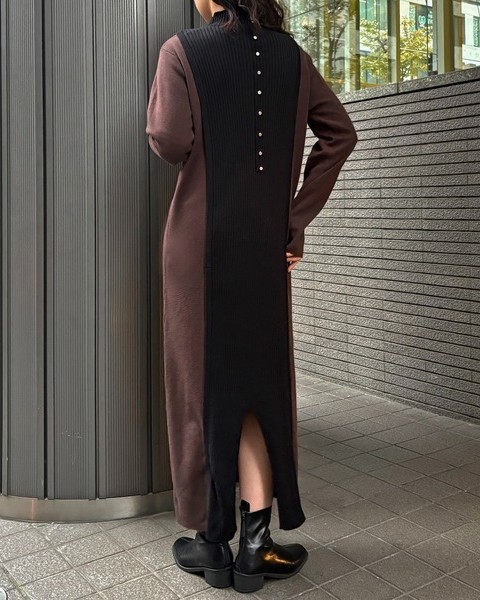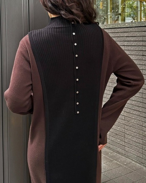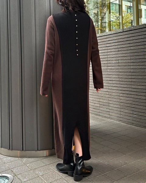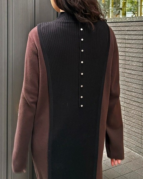 バックスタイルがポイントのバイカラーニットワンピース