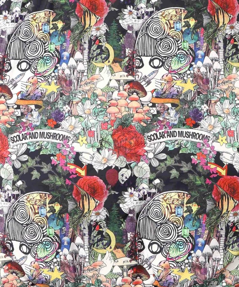 スカラーちゃんが窓から覗く、キノコやお花いっぱいの景色が広がる09(ブラック)・