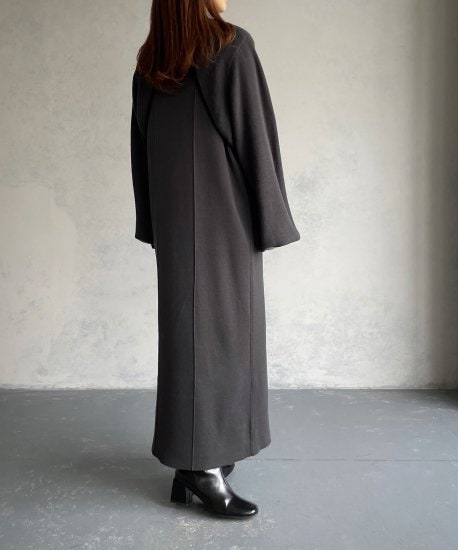 ボレロケープをレイヤードしたようなデザインのロング丈のニットワンピースです。