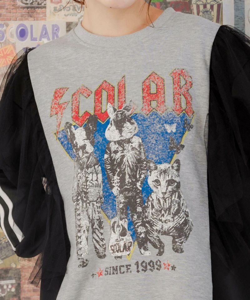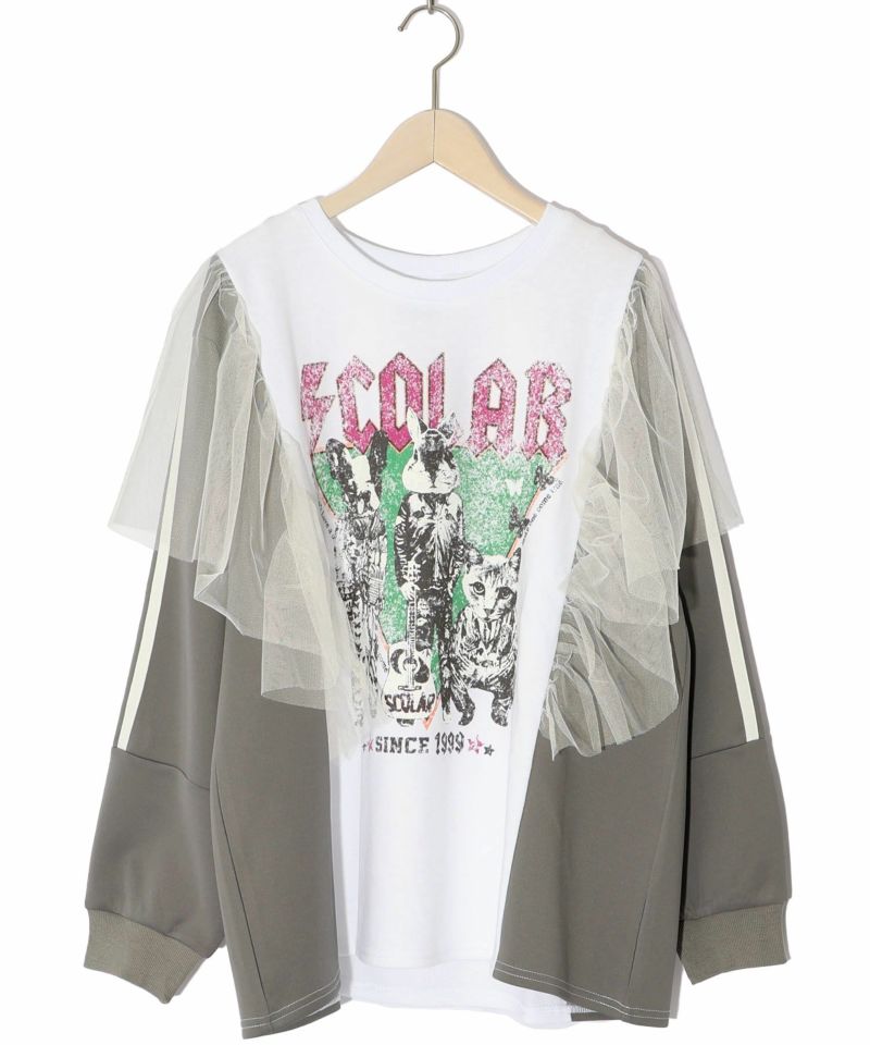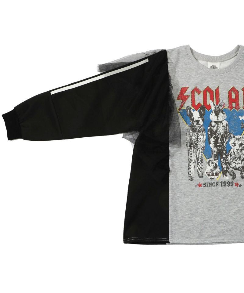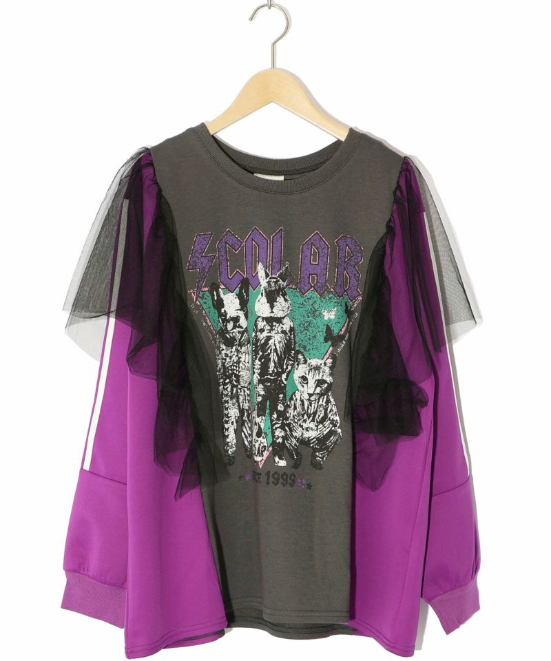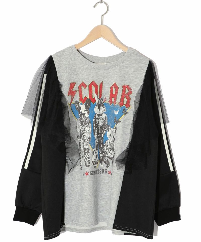 スカラー / ロックなアニマル柄 異素材切替チュール袖プルオーバー