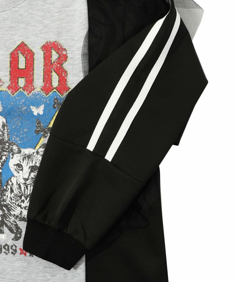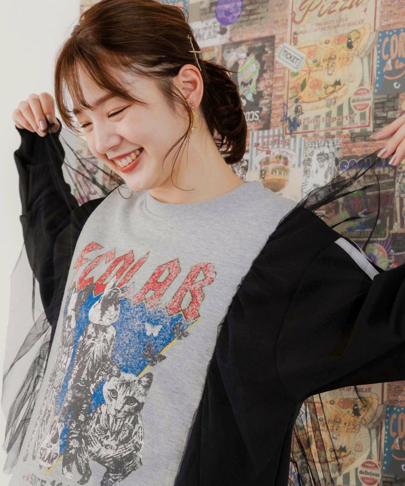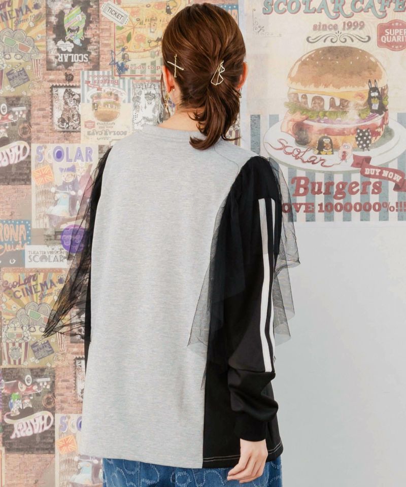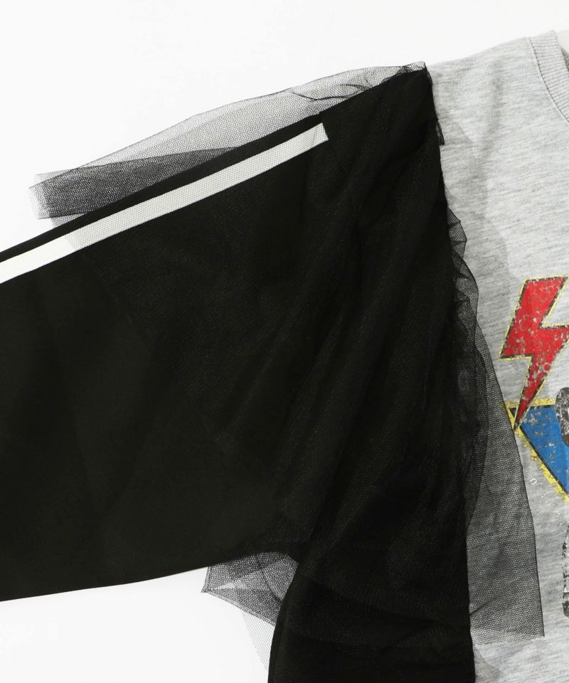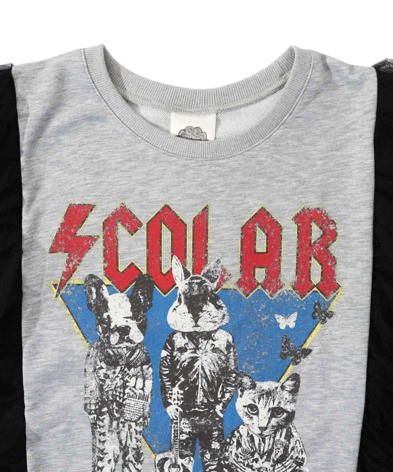 スカラー / ロックなアニマル柄 異素材切替チュール袖プルオーバー
