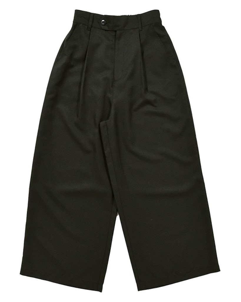 落ち感のある生地で、ベルトのカラステング(持ち出し)は先端を三角にしてポイントにしました。