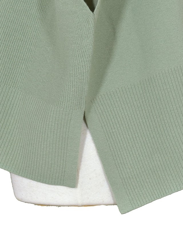 首元はスッキリとみえるVネックで春先はシャツやカットソーと、初夏は半袖やノースリーブとのレイヤードができ、着回しやすいアイテムです。