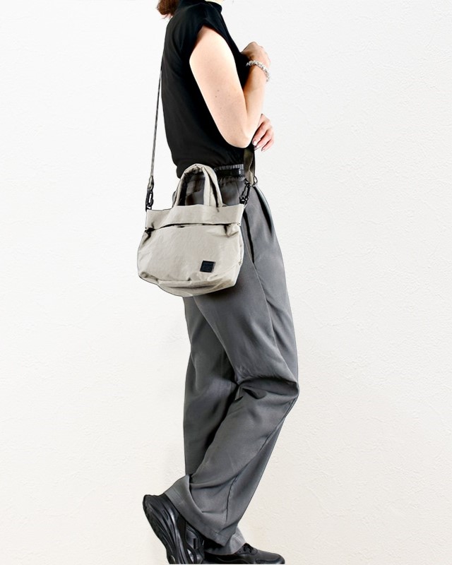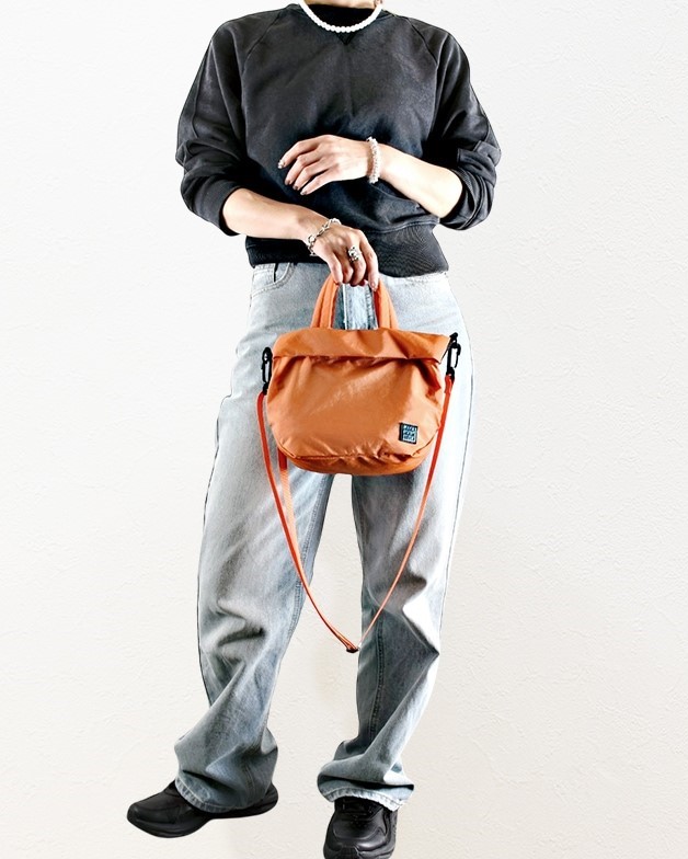 ナイロンでありながらお洋服にも合わせやすいファブリック感のある形が特徴!