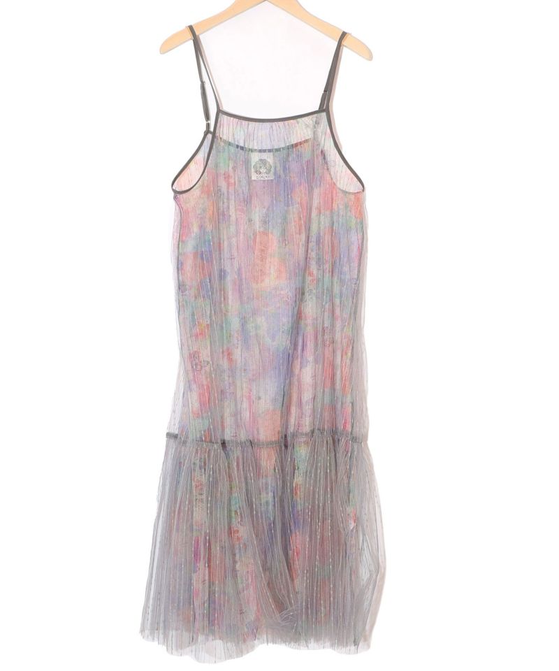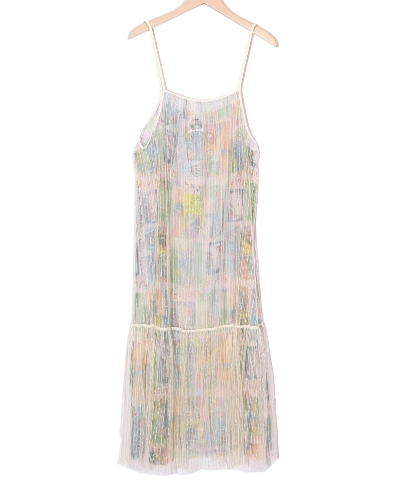 ストライプ柄チュールをふんわり重ねたチュール素材のキャミワンピースです。