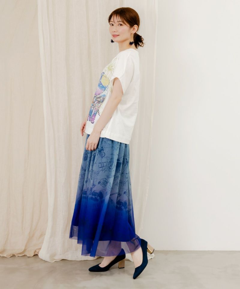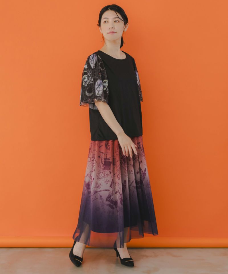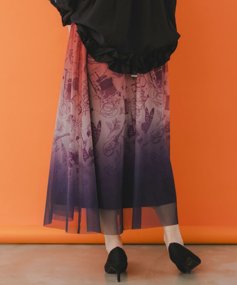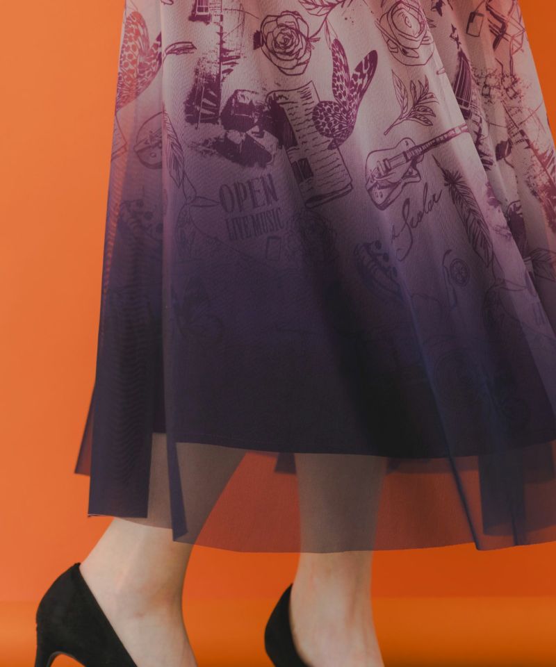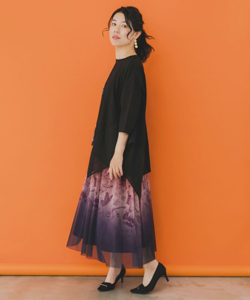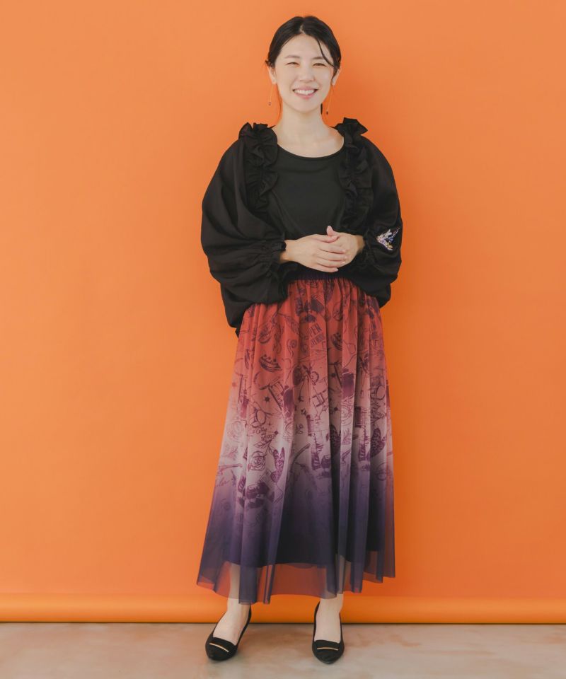 ふんわりチュールを重ねた立体的なシルエットが華やかな印象のスカート。