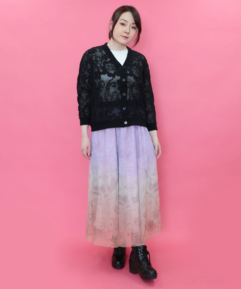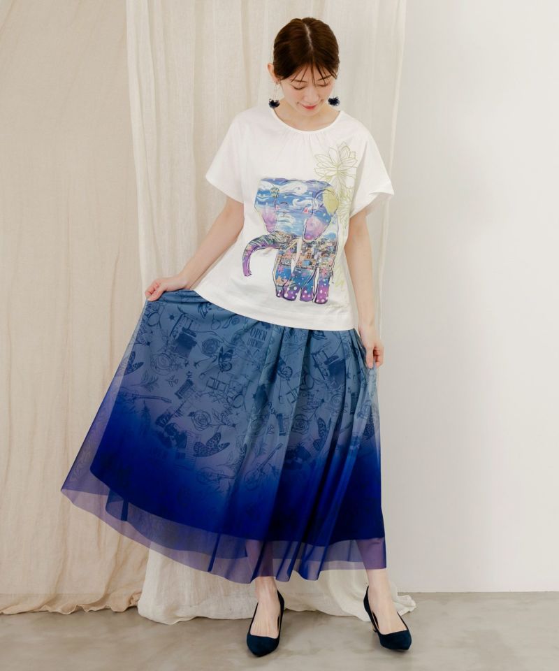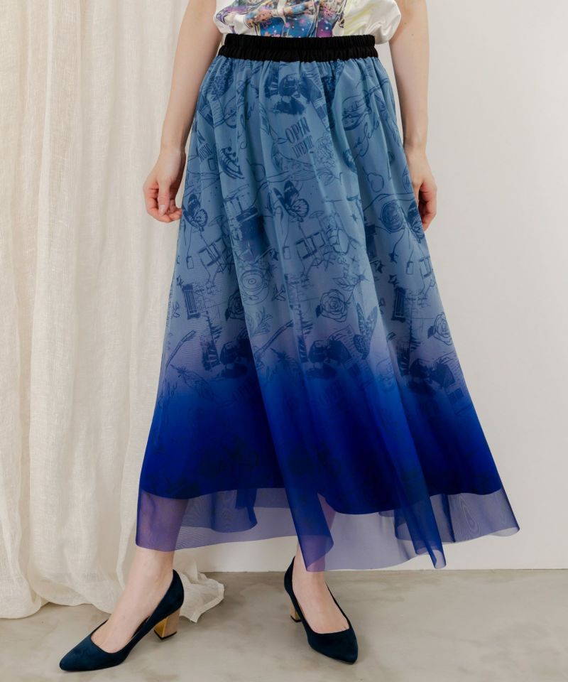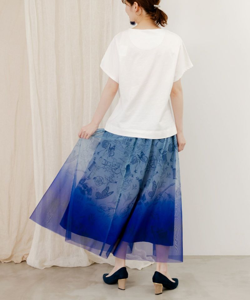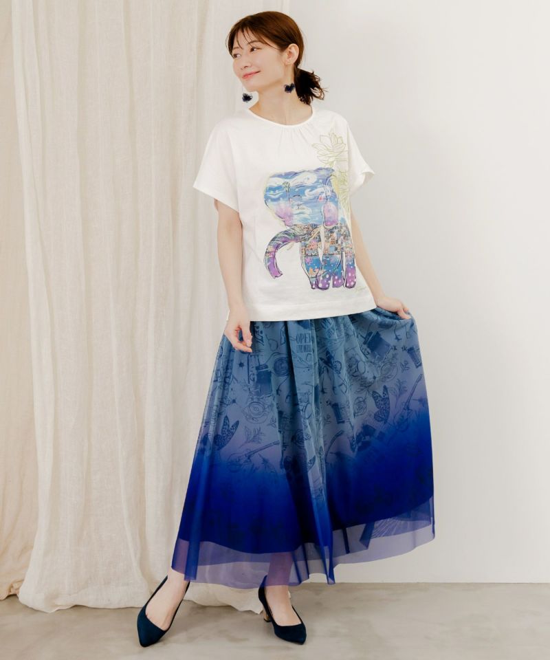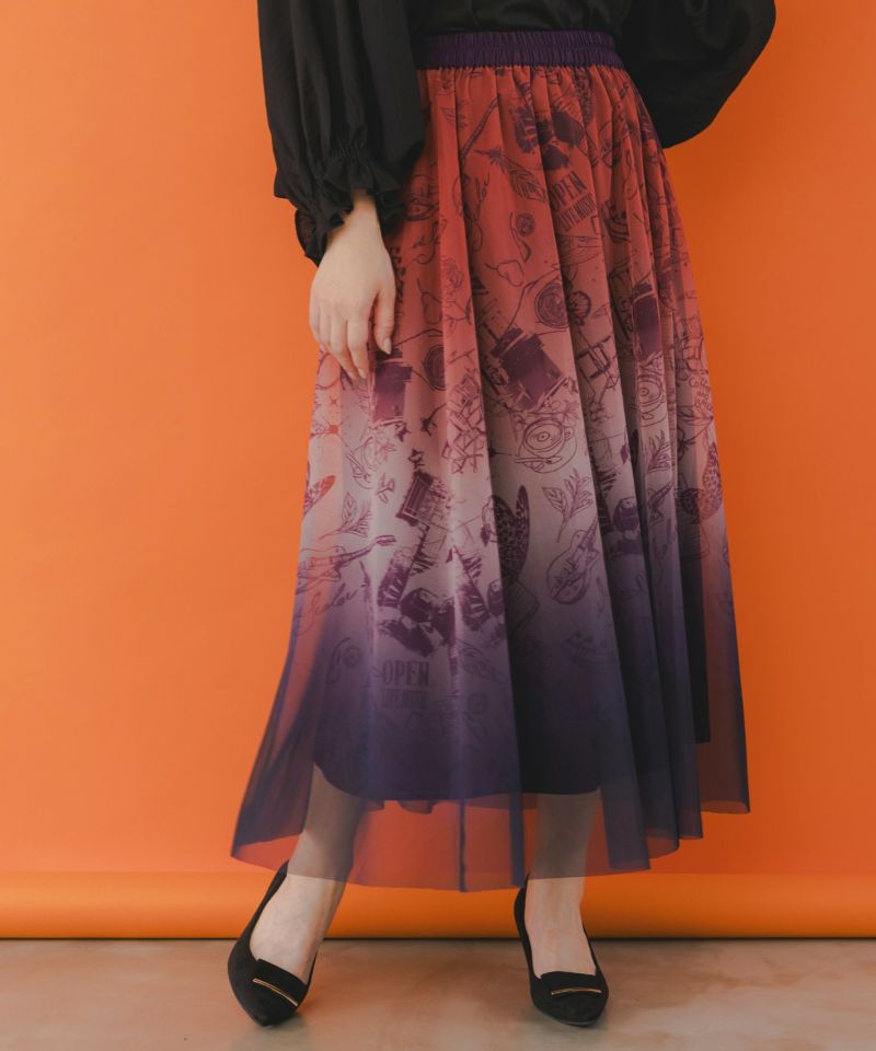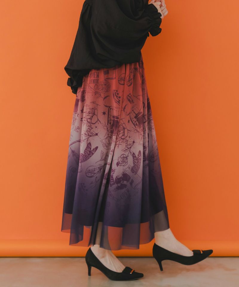 ふんわりチュールを重ねた立体的なシルエットが華やかな印象のスカート。