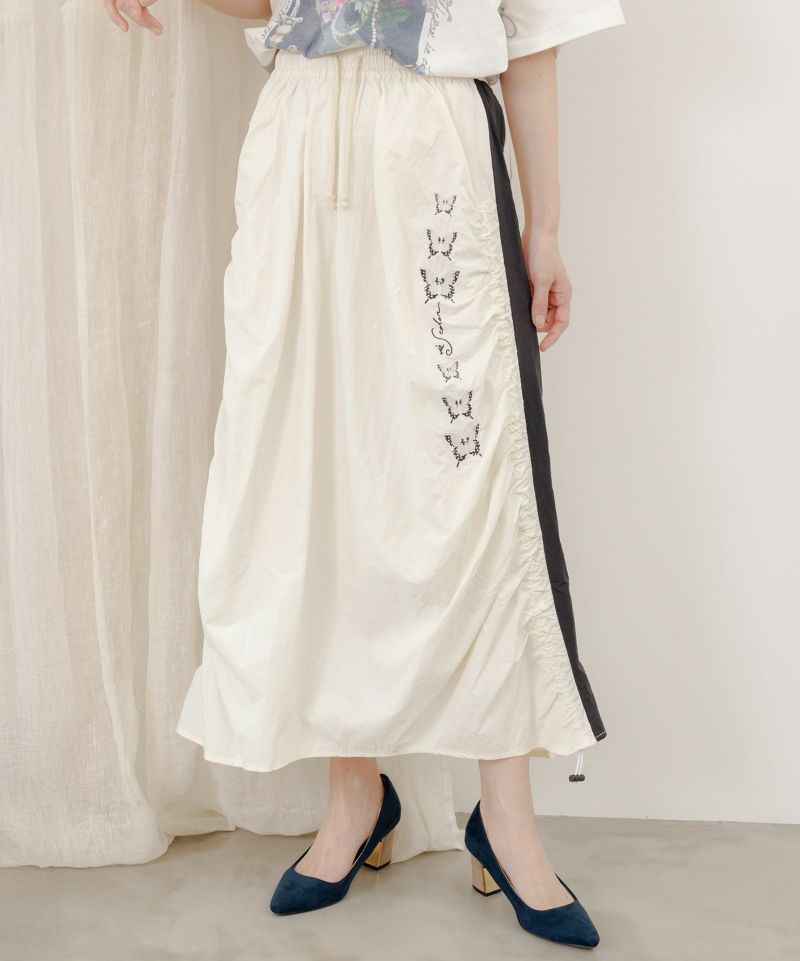 イズスカラー / 蝶柄サイドギャザー ワッシャースカート