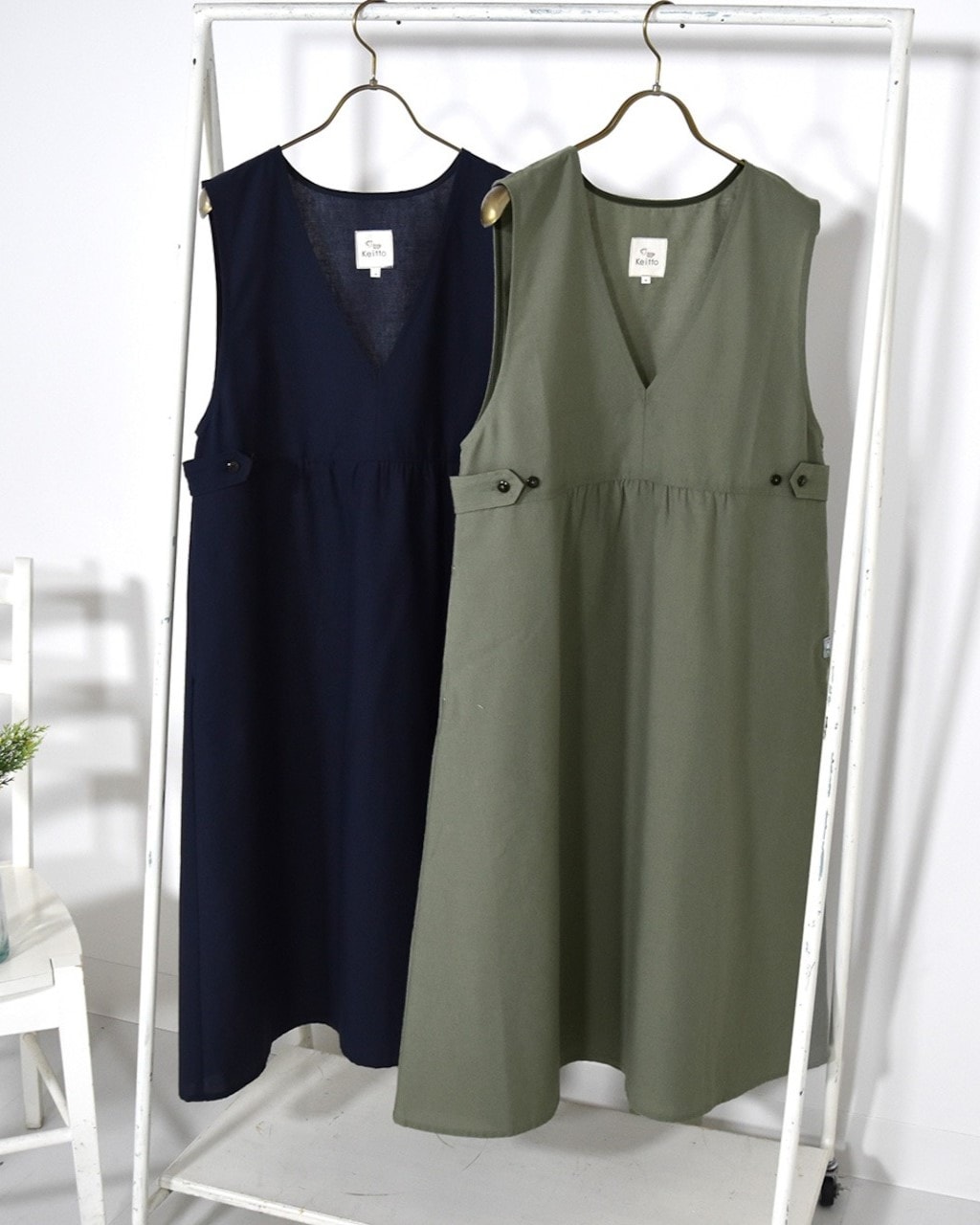 Vネックジャンパースカートです。