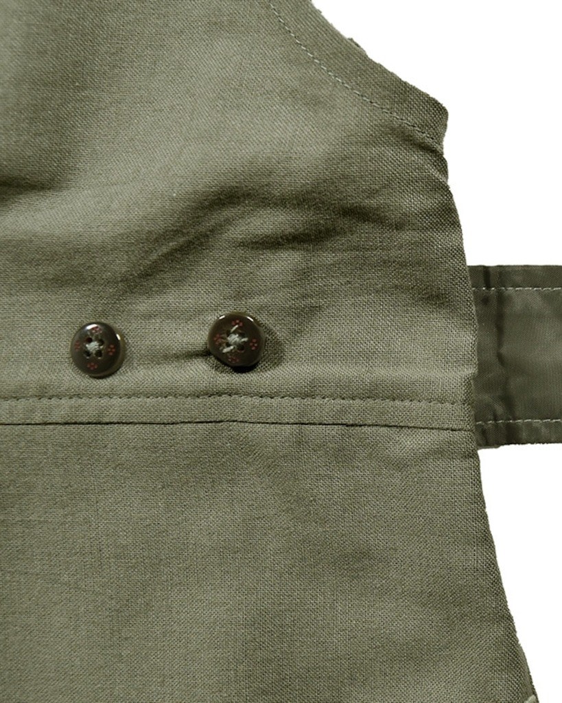 ウエストにベルトでボタンで調節ができ