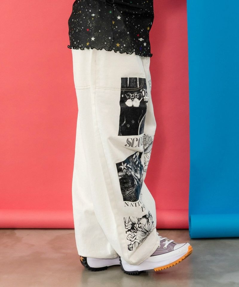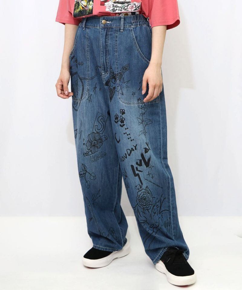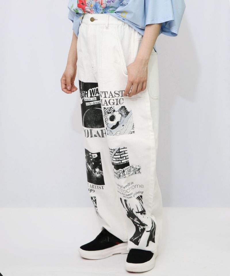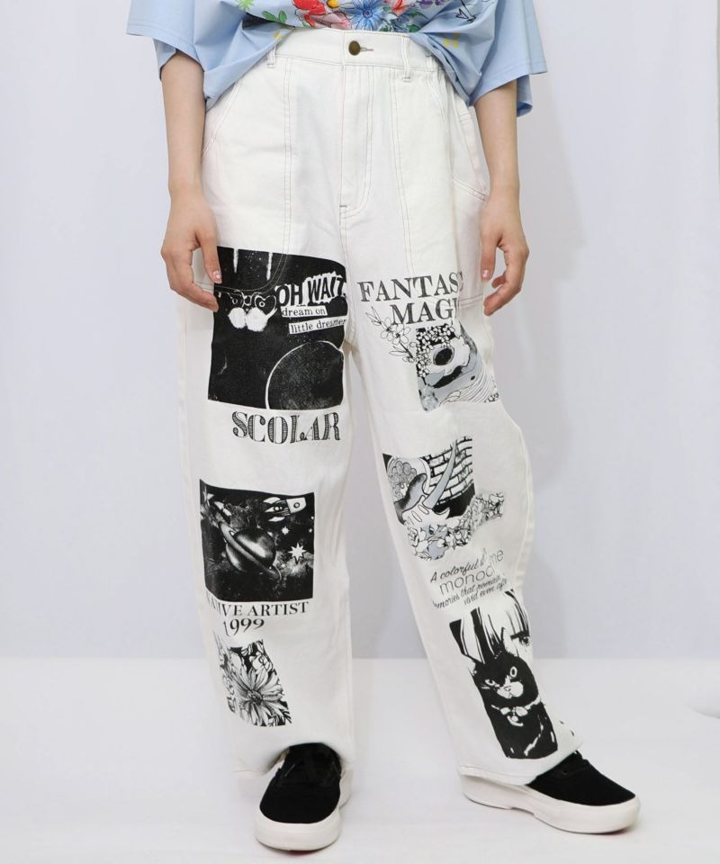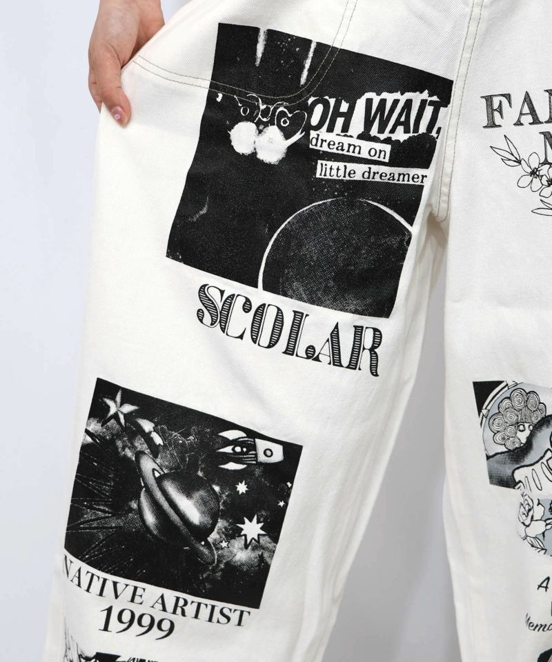 スカラー / ラクガキ・コラージュ柄 2柄展開デニムパンツ