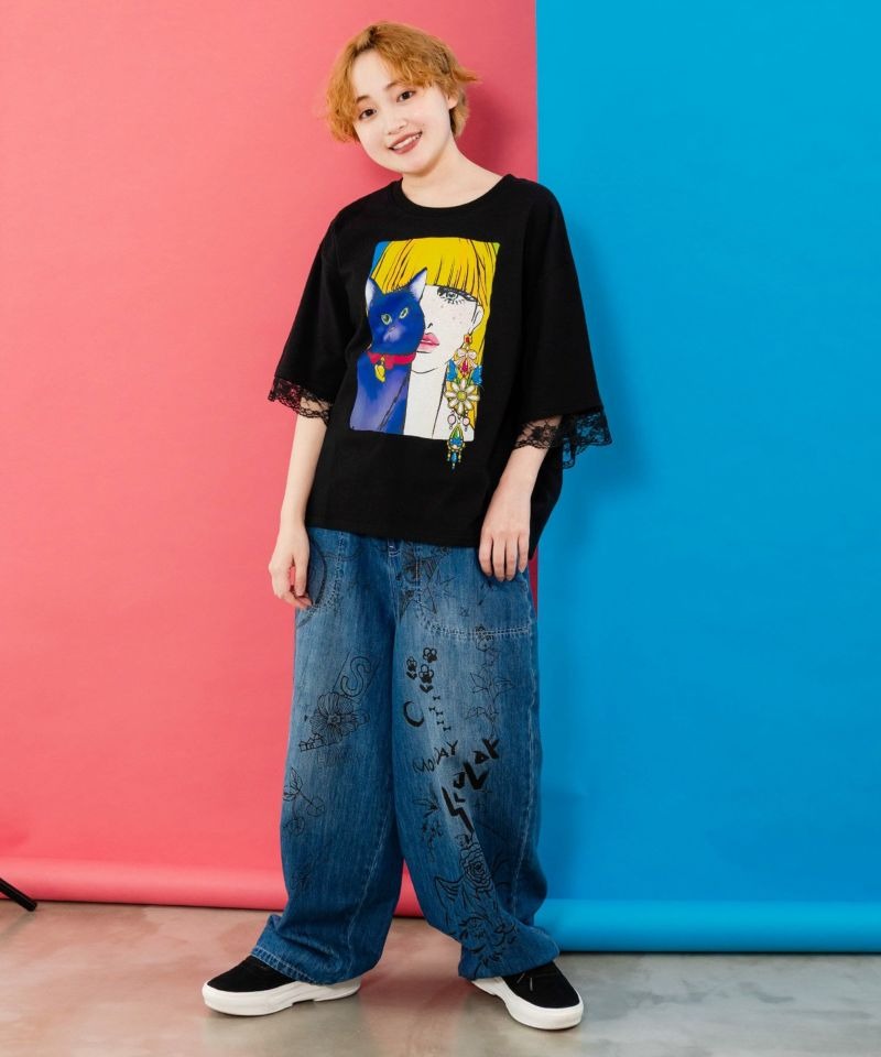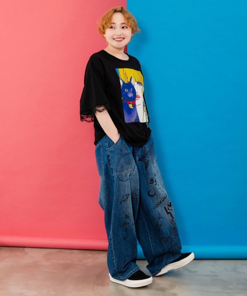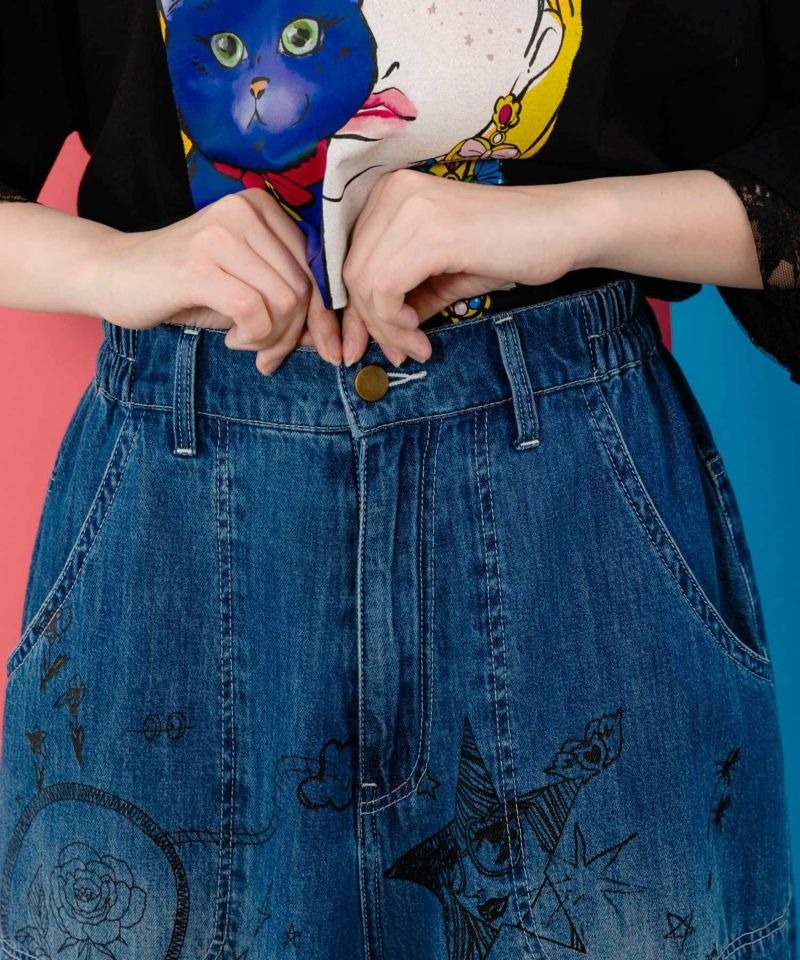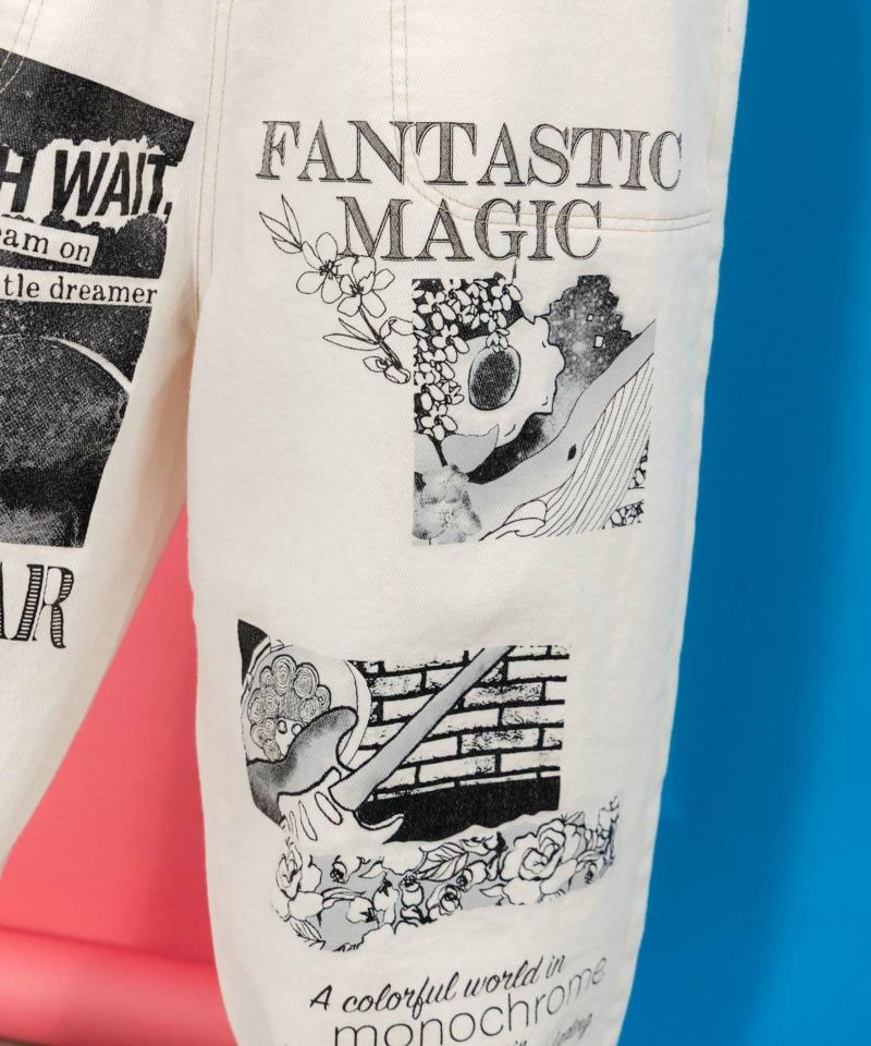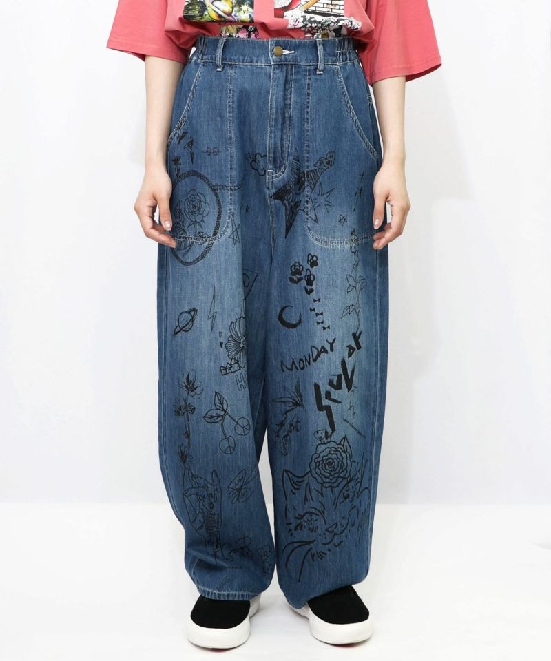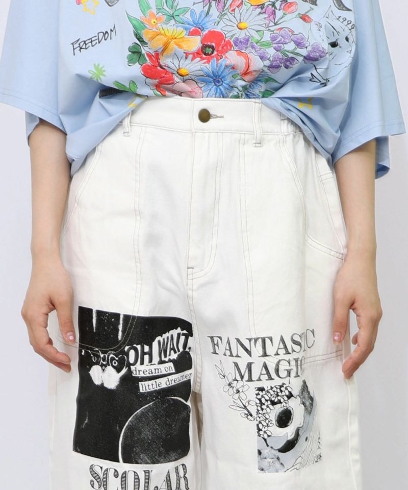 スカラー / ラクガキ・コラージュ柄 2柄展開デニムパンツ