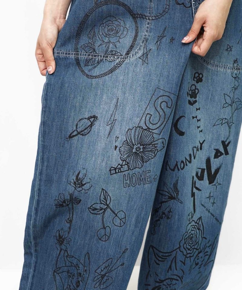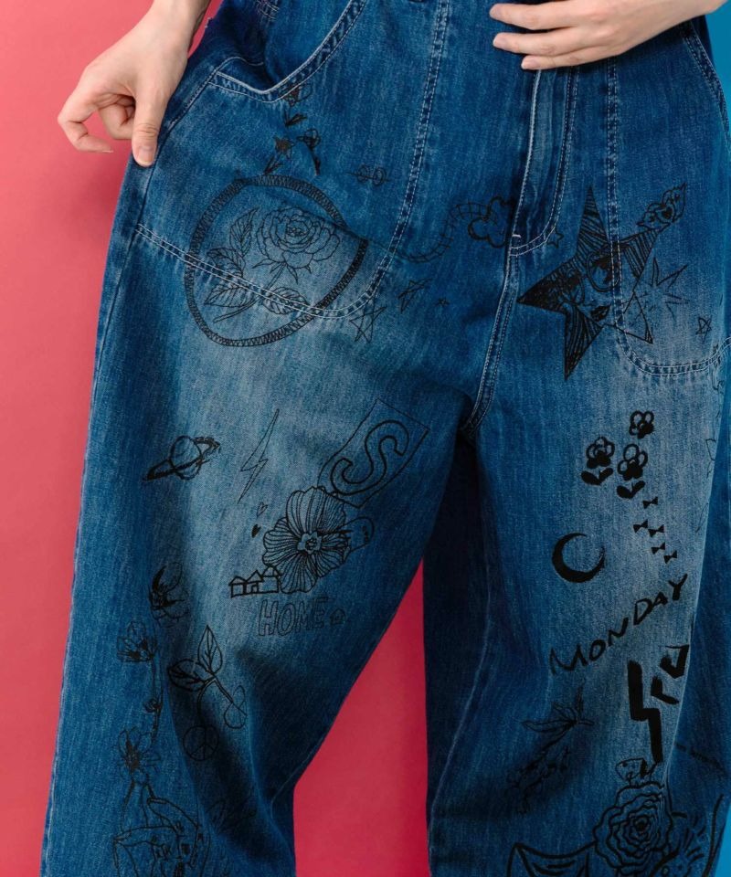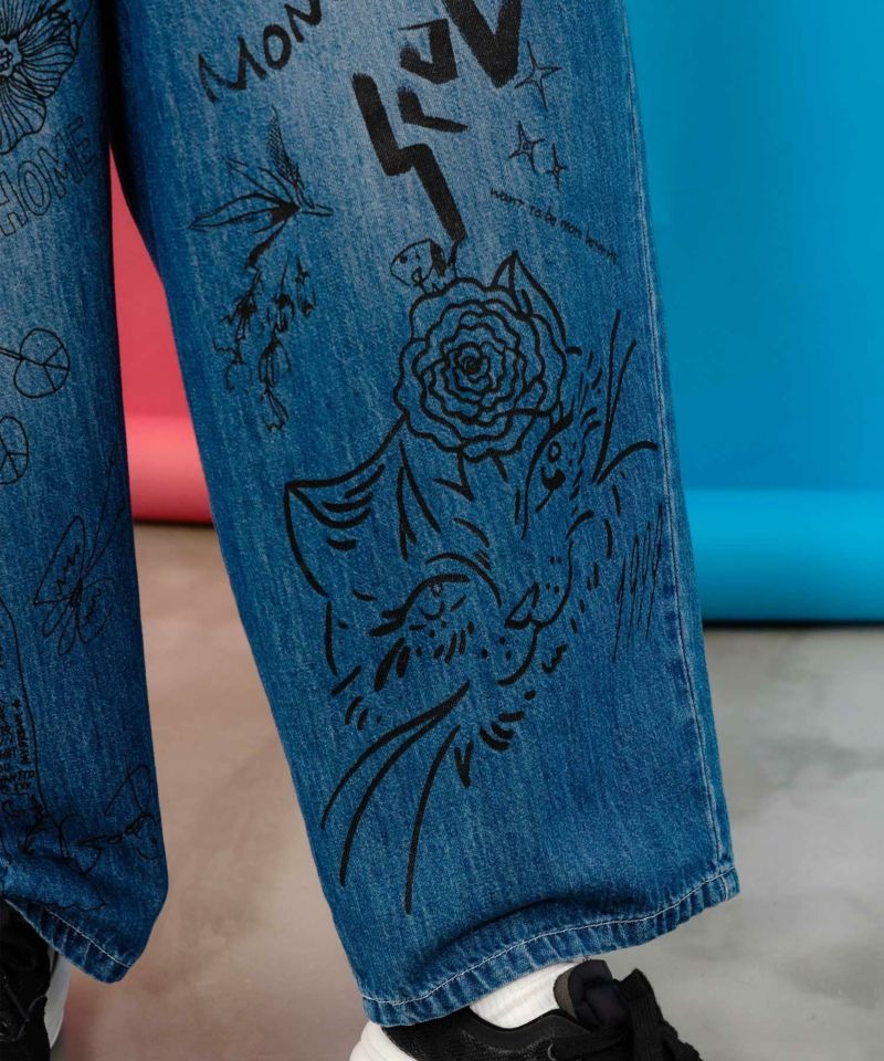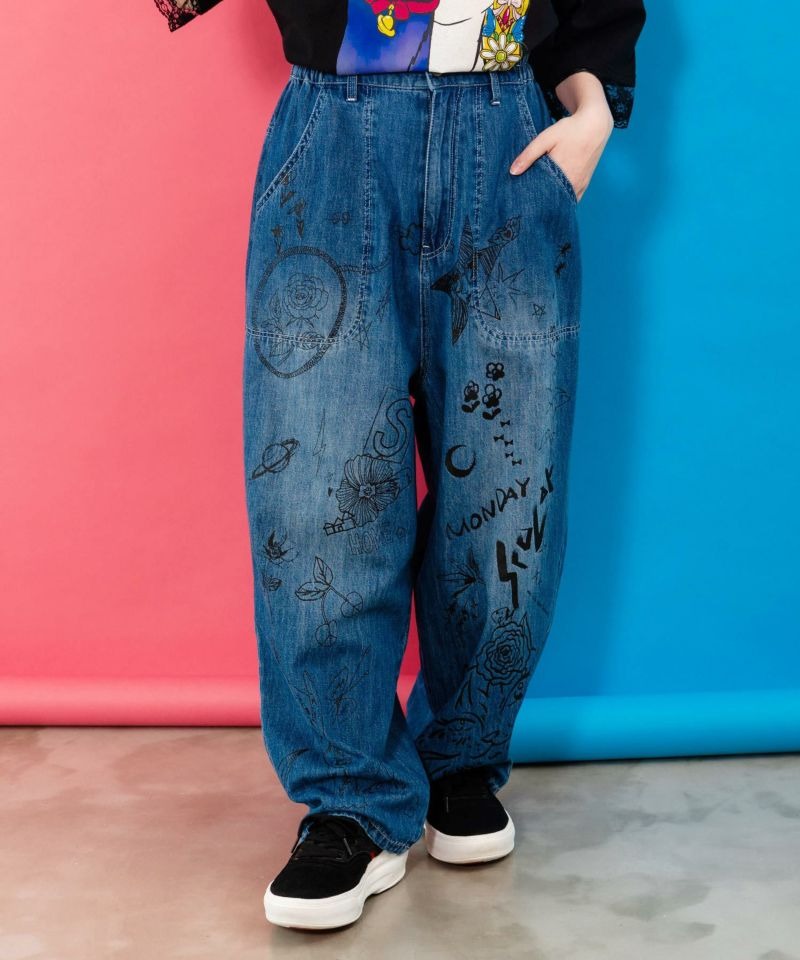 そんな気分のあなたにぴったりの、手描き風プリントがおしゃれな個性派デニムが登場!!