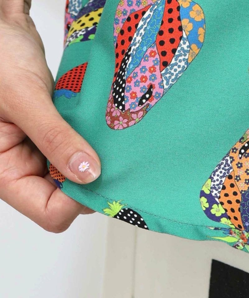 38(グリーン):いろんな柄のパッチワーク風イチゴ柄