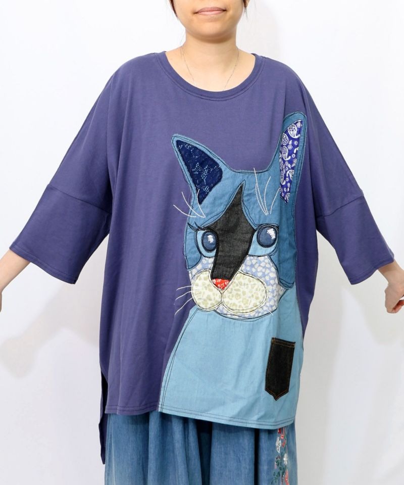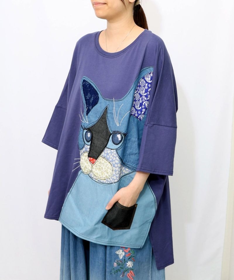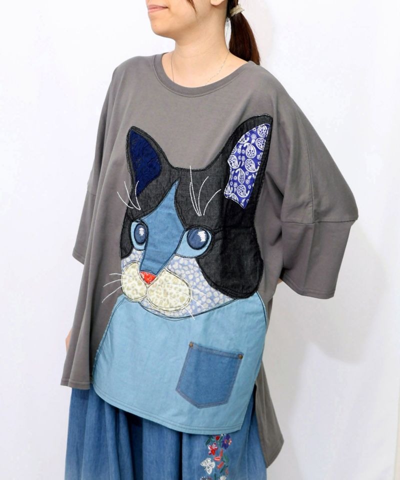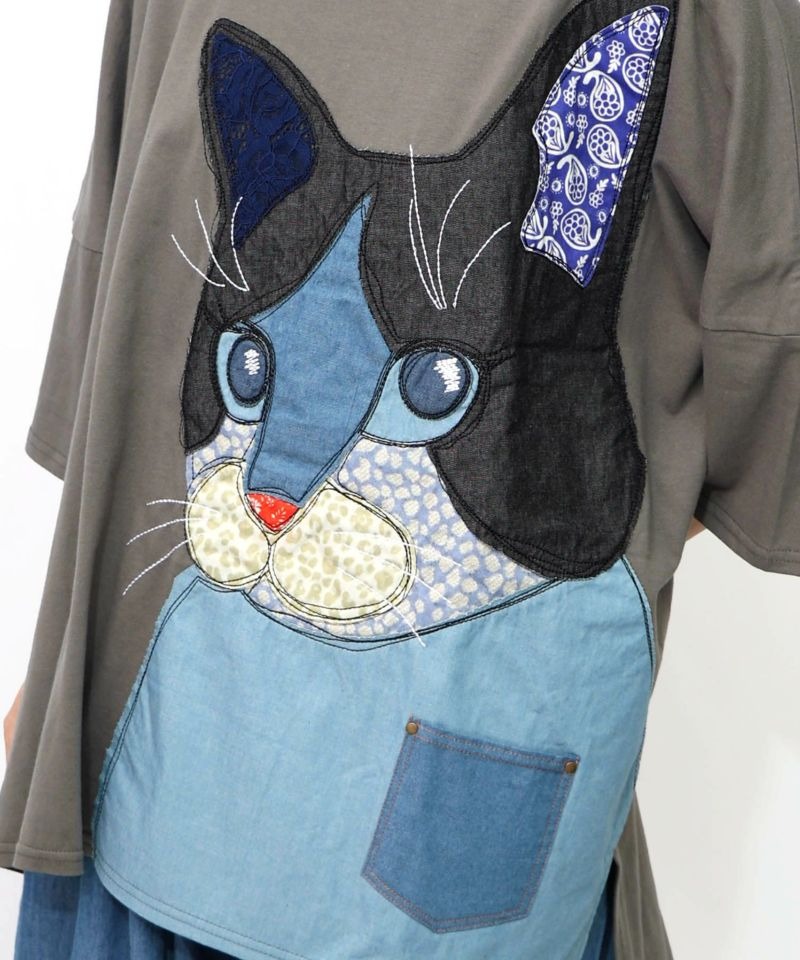 デニム生地で表現されたデニムの大きなネコちゃんがインパクトたっぷり!