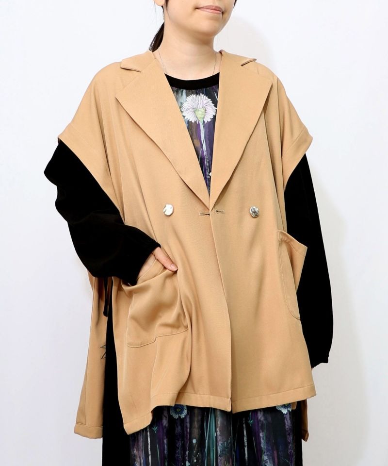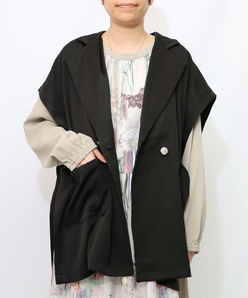 背中に大きな蝶々とお花の刺繍を施したデザインが目を惹くテーラードジレ。
